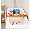 Bambusový podnos do vany je praktickým doplňkem pro relaxaci ve vaně, který nabízí několik odkládacích prostorů pro knihy, nápoje či kosmetiku. Vyroben je z přírodního bambusu, který je navržen pro dlouhou životnost a snadnou údržbu. Podnos disponuje nastavitelnou opěrkou pro knihu nebo tablet, která zajišťuje pohodlné čtení během koupání. Jeho rozměry 75 × 23 × 4,5 cm umožňují stabilní umístění přes vanu a díky pevnému provedení se snadno přizpůsobí různým šířkám van. Přírodní odstín bambusu přináší do koupelny příjemný vizuální efekt a zároveň odolnost vůči vlhkosti.