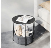 Kulatý odkládací stolek o průměru 45 cm a výšce 50 cm nabízí praktický prostor pro odložení drobností díky textilnímu koši umístěnému pod deskou. Deska je vyrobena z MDF s černým dekorem, který doplňuje černé kovové nohy s jemně zaoblenými tvary, jež zajišťují stabilitu a moderní vzhled. Textilní koš je pevný a snadno přístupný, ideální pro uložení časopisů, dek nebo jiných předmětů. Kompaktní rozměry stolku umožňují jeho využití v obývacím pokoji, ložnici či pracovně jako praktický doplněk s úložným potenciálem.