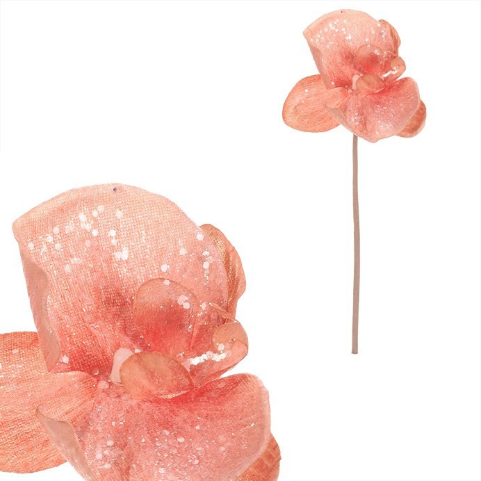 Umělá orchidej na stonku v jemné cappuccino barvě se třpytkami přináší do vánoční dekorace eleganci a něžnost. Tento květ je ideální pro vytvoření sváteční atmosféry, která zaujme svou krásou a jemným leskem.