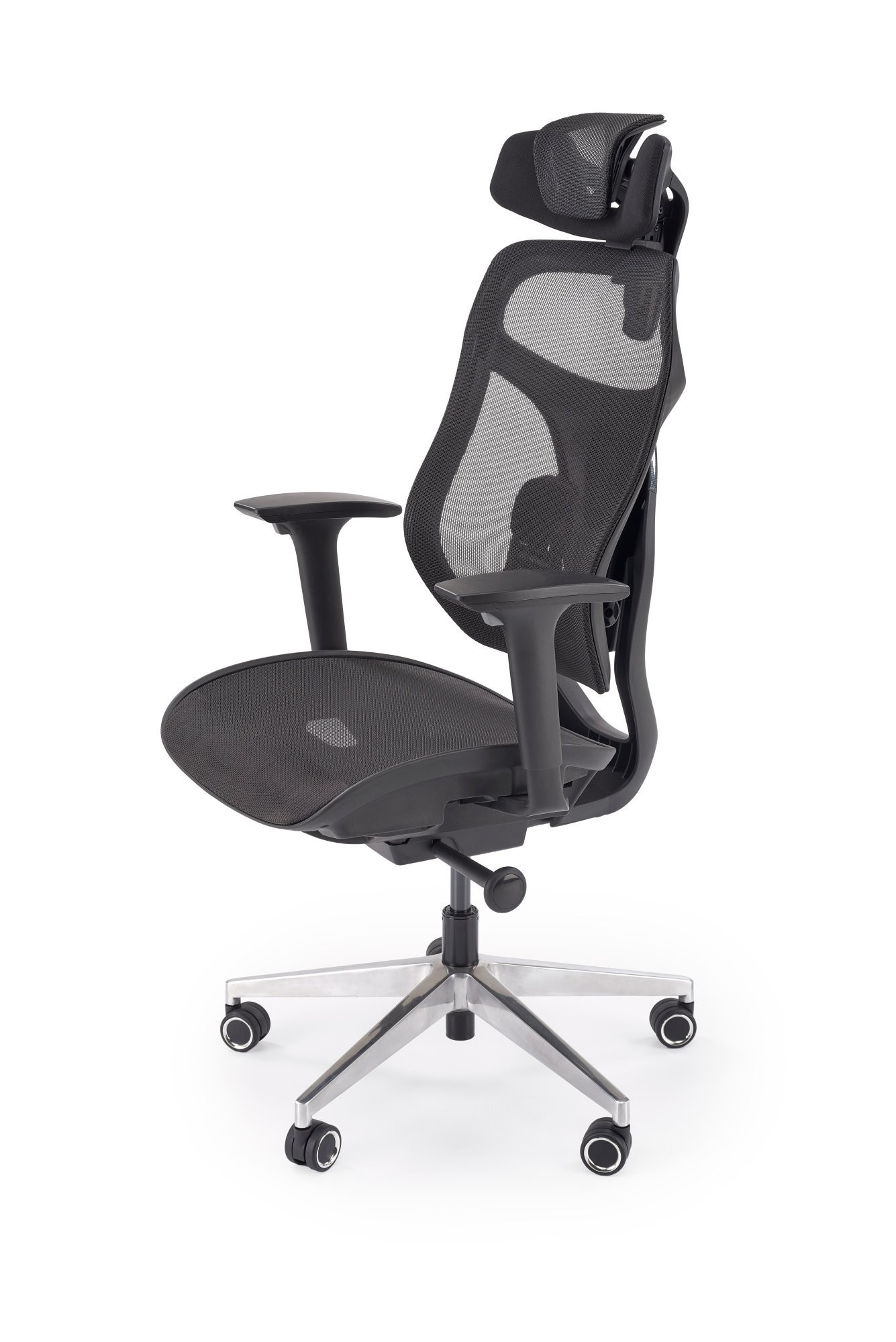 rozměry: 70/70/123-131/46-54 cm, synchronní mechanismus / nastavitelná výška opěradla / nastavitelný bod opory zad / nastavitelné područky / nastavitelná opěrka hlavy / hliníková základna / vysouvatelné sedadlo, materiál: síťovina, barva: černá
