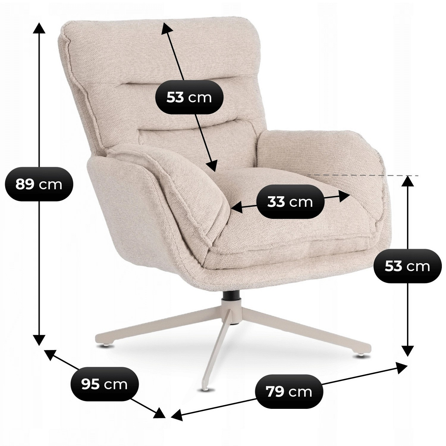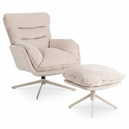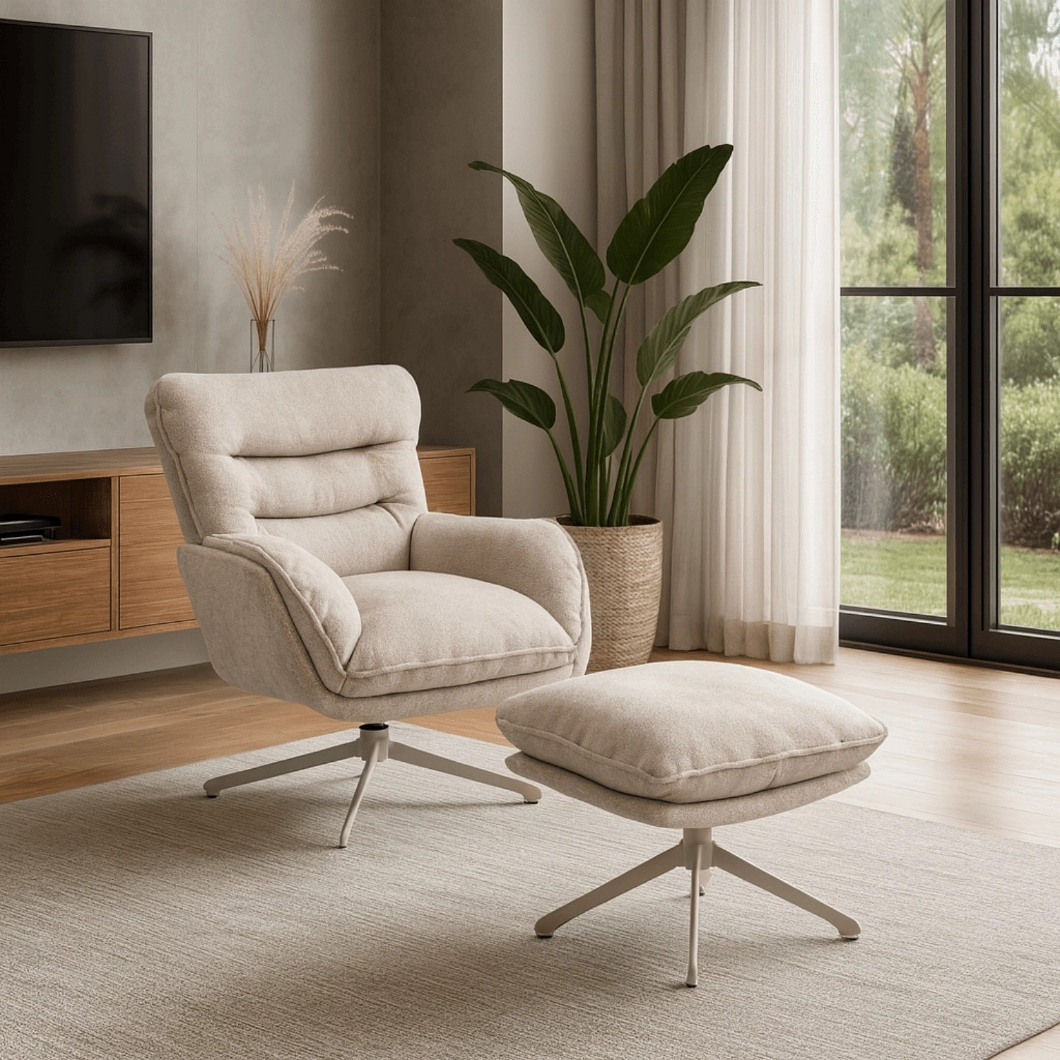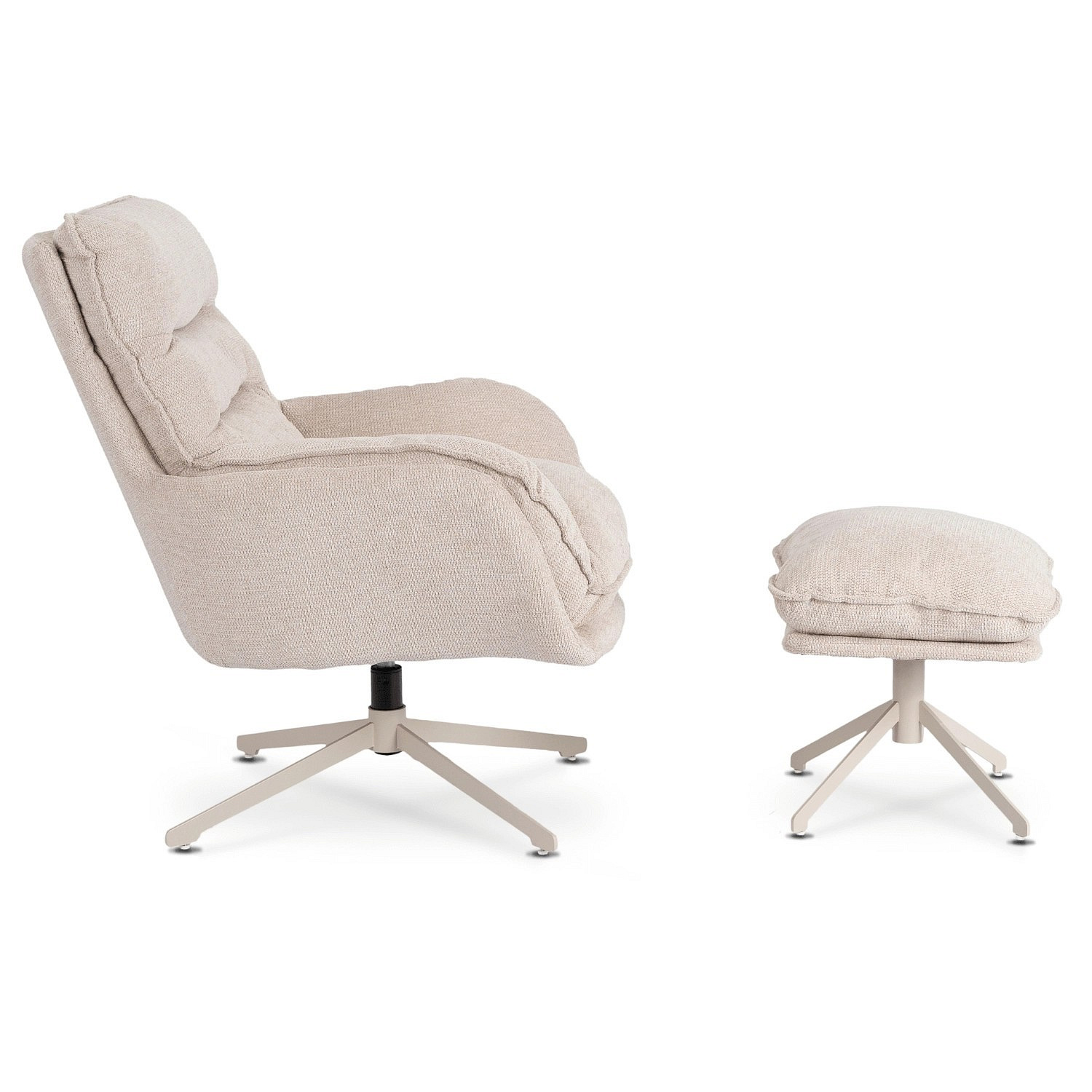 Otočná Relaxační Křeslo PASADENA s Podnožkou Krémové