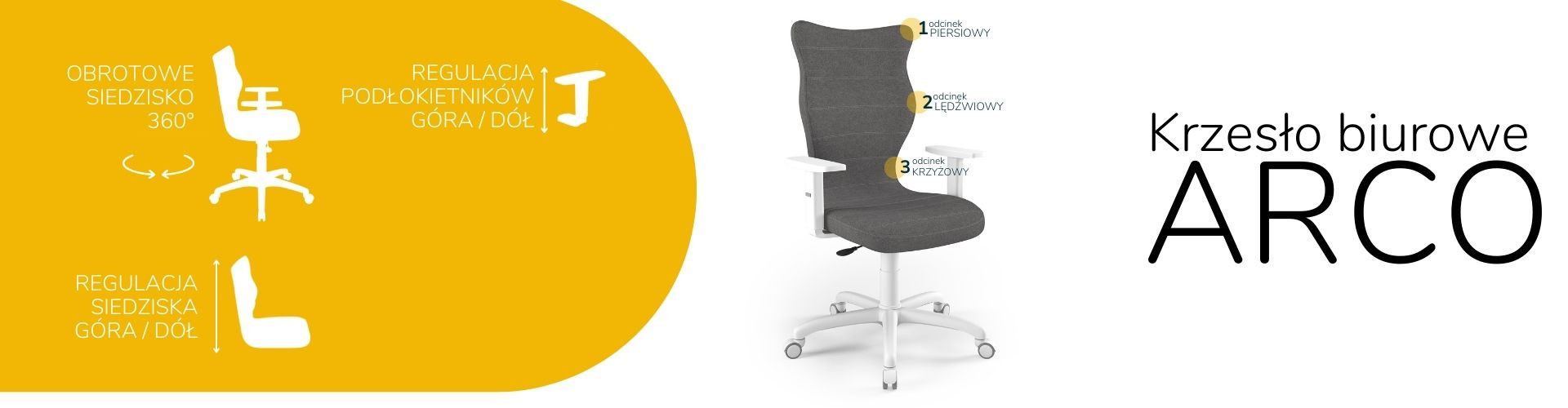 Představená čalouněná kancelářská židle je navíc vybavena sadou pěti měkkých otočných koleček. Model kancelářské židle na kolečkách umožňuje plynulý pohyb v jakémkoli směru. Díky své konstrukci umožňuje Arco volný pohyb jak na tvrdých podlahách, tak na měkkých kobercích nebo předložkách. Kancelářská židle Arco je díky své robustní konstrukci, pohodlnému sedáku, mnoha možnostem nastavení a mnoha estetickým vlastnostem ideální volbou. Je dokonalým řešením jak pro moderní kancelářské prostory, tak pro intimní domácí pracovnu. Za zmínku stojí také to, že prezentovaná kancelářská židle byla navržena a kompletně vyrobena v Polsku, což navíc svědčí o vysoké kvalitě zpracování.
