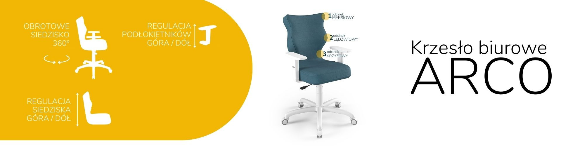 Představená čalouněná kancelářská židle je navíc vybavena sadou pěti měkkých otočných koleček. Model kancelářské židle na kolečkách umožňuje plynulý pohyb v jakémkoli směru. Díky své konstrukci umožňuje Arco volný pohyb jak na tvrdých podlahách, tak na měkkých kobercích nebo předložkách. Kancelářská židle Arco je díky své robustní konstrukci, pohodlnému sedáku, mnoha možnostem nastavení a mnoha estetickým vlastnostem ideální volbou. Je dokonalým řešením jak pro moderní kancelářské prostory, tak pro intimní domácí pracovnu. Za zmínku stojí také to, že prezentovaná kancelářská židle byla navržena a kompletně vyrobena v Polsku, což navíc svědčí o vysoké kvalitě zpracování.