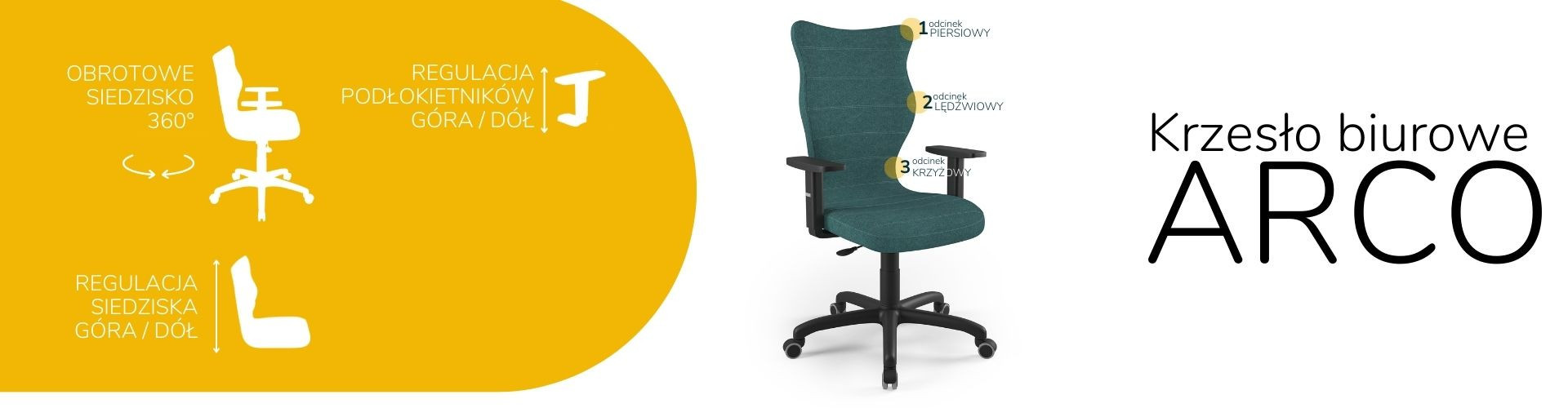 Představená čalouněná kancelářská židle je navíc vybavena sadou pěti měkkých otočných koleček. Model kancelářské židle na kolečkách umožňuje plynulý pohyb v jakémkoli směru. Díky své konstrukci umožňuje Arco volný pohyb jak na tvrdých podlahách, tak na měkkých kobercích nebo předložkách. Kancelářská židle Arco je díky své robustní konstrukci, pohodlnému sedáku, mnoha možnostem nastavení a mnoha estetickým vlastnostem ideální volbou. Je dokonalým řešením jak pro moderní kancelářské prostory, tak pro intimní domácí pracovnu. Za zmínku stojí také to, že prezentovaná kancelářská židle byla navržena a kompletně vyrobena v Polsku, což navíc svědčí o vysoké kvalitě zpracování.