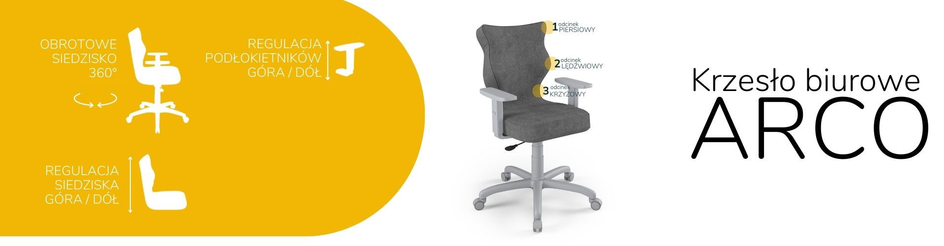 Představená čalouněná kancelářská židle je navíc vybavena sadou pěti měkkých otočných koleček. Model kancelářské židle na kolečkách umožňuje plynulý pohyb v jakémkoli směru. Díky své konstrukci umožňuje Arco volný pohyb jak na tvrdých podlahách, tak na měkkých kobercích nebo předložkách. Kancelářská židle Arco je díky své robustní konstrukci, pohodlnému sedáku, mnoha možnostem nastavení a mnoha estetickým vlastnostem ideální volbou. Je dokonalým řešením jak pro moderní kancelářské prostory, tak pro intimní domácí pracovnu. Za zmínku stojí také to, že prezentovaná kancelářská židle byla navržena a kompletně vyrobena v Polsku, což navíc svědčí o vysoké kvalitě zpracování.
