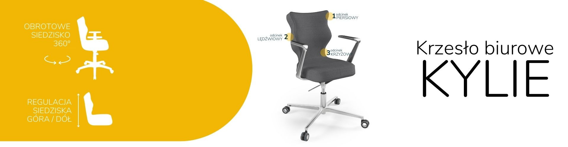 Moderní židle Kylie je praktickým a elegantním řešením přizpůsobeným potřebám moderní kanceláře. Při dlouhé práci vsedě jsou velmi důležité správné podmínky. Optimální držení těla je naprosto zásadní, ale důležité jsou také otázky, jako je vzdálenost od monitoru a časté změny polohy. Kancelářská židle Kylie, kterou nabízíme, vám umožní efektivně se postarat o všechny tři aspekty najednou. Tím se zvyšuje naše výkonnost a výrazně se snižují negativní účinky sedavého zaměstnání.