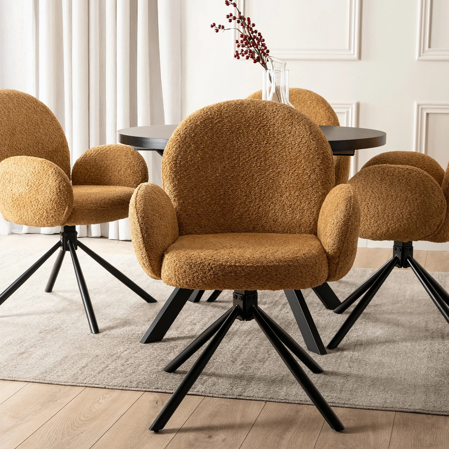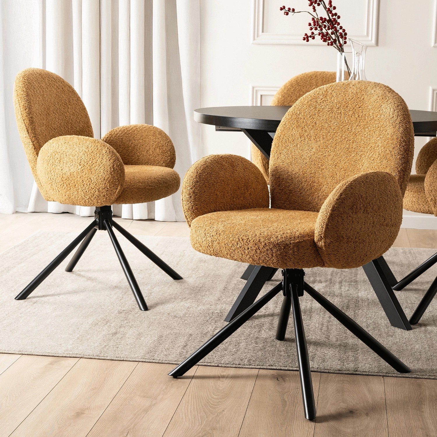 Otočná židle MUSSO Hořčicová Boucle
