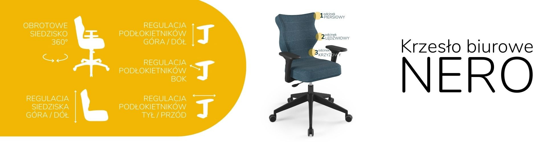 Otočná kancelářská židle Nero je pohodlný model, který se jistě osvědčí při každodenních úkolech u pracovního stolu. Tento výrobek je plně ergonomický - byl navržen tak, aby vám pomohl udržet správné držení těla. židle Nero, která je v naší nabídce, byla vyrobena pod značkou Entelo. Jedná se o exemplář navržený a vyrobený v Polsku, který si plně zaslouží hrdý název "made in Poland". Široký výběr barev čalounění vám umožní vybrat si dokonalé křeslo, které se hodí do každého interiéru. Kancelářská židle Nero - pohodlí, odolnost a bezpečnost.