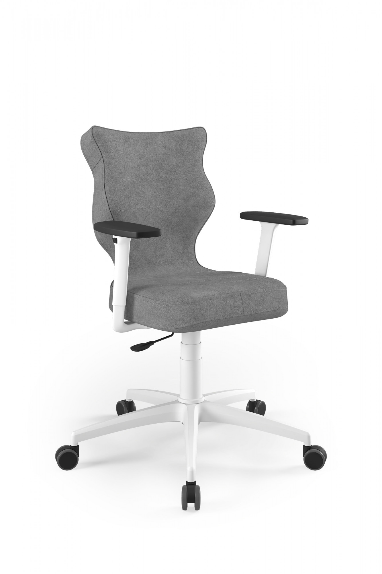 Moderní židle Perto Black je praktické a elegantní řešení přizpůsobené potřebám moderní kanceláře. Při dlouhé práci vsedě jsou velmi důležité správné podmínky. Optimální držení těla je naprosto zásadní, ale důležité jsou také otázky, jako je vzdálenost od monitoru a časté změny polohy. Bílá kancelářská židle Perto, kterou nabízíme, vám umožní efektivně se postarat o všechny tři aspekty najednou. Tím se zvyšuje naše výkonnost a výrazně se snižují negativní účinky sedavého zaměstnání. Kancelářská židle na kolečkách také řeší organizační problémy spojené s uspořádáním a změnou uspořádání prostoru v kanceláři. Můžeme je snadno přemístit nebo přesunout do nižšího či vyššího patra. Nebude nás to stát příliš mnoho úsilí, protože bílá kancelářská židle, kterou jsme navrhli, je velmi lehká.
