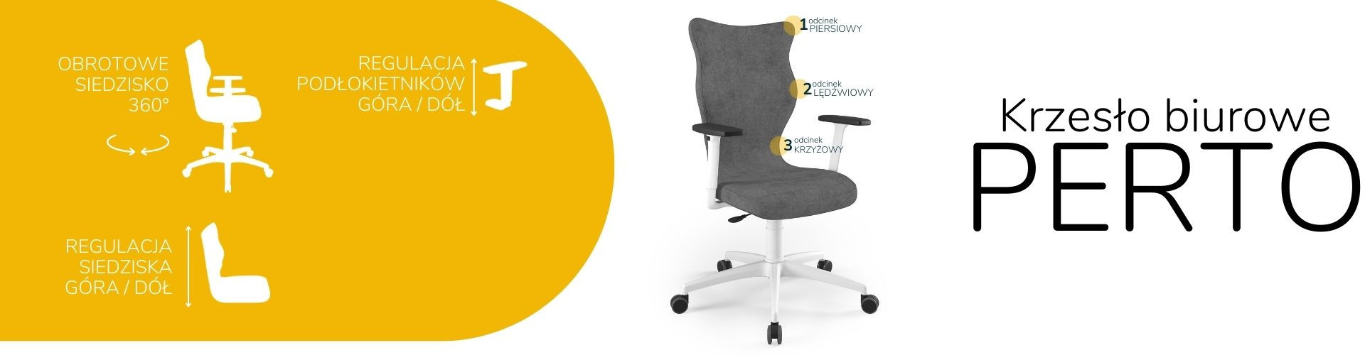 Moderní židle Perto Black je praktické a elegantní řešení přizpůsobené potřebám moderní kanceláře. Při dlouhé práci vsedě jsou velmi důležité správné podmínky. Optimální držení těla je naprosto zásadní, ale důležité jsou také otázky, jako je vzdálenost od monitoru a časté změny polohy. Bílá kancelářská židle Perto, kterou nabízíme, vám umožní efektivně se postarat o všechny tři aspekty najednou. Tím se zvyšuje naše výkonnost a výrazně se snižují negativní účinky sedavého zaměstnání. Kancelářská židle na kolečkách také řeší organizační problémy spojené s uspořádáním a změnou uspořádání prostoru v kanceláři. Můžeme je snadno přemístit nebo přesunout do nižšího či vyššího patra. Nebude nás to stát příliš mnoho úsilí, protože bílá kancelářská židle, kterou jsme navrhli, je velmi lehká.