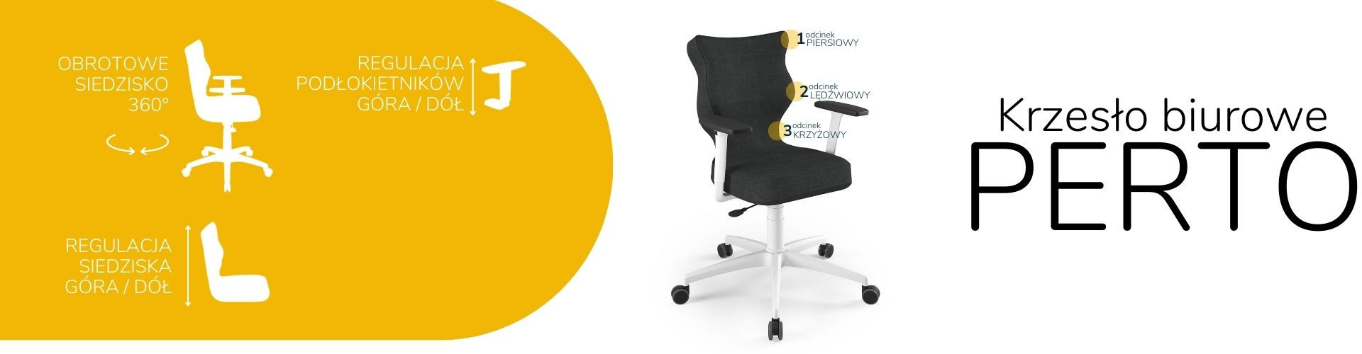 Moderní židle Perto Black je praktické a elegantní řešení přizpůsobené potřebám moderní kanceláře. Při dlouhé práci vsedě jsou velmi důležité správné podmínky. Optimální držení těla je naprosto zásadní, ale důležité jsou také otázky, jako je vzdálenost od monitoru a časté změny polohy. Bílá kancelářská židle Perto, kterou nabízíme, vám umožní efektivně se postarat o všechny tři aspekty najednou. Tím se zvyšuje naše výkonnost a výrazně se snižují negativní účinky sedavého zaměstnání. Kancelářská židle na kolečkách také řeší organizační problémy spojené s uspořádáním a změnou uspořádání prostoru v kanceláři. Můžeme je snadno přemístit nebo přesunout do nižšího či vyššího patra. Nebude nás to stát příliš mnoho úsilí, protože bílá kancelářská židle, kterou jsme navrhli, je velmi lehká.
