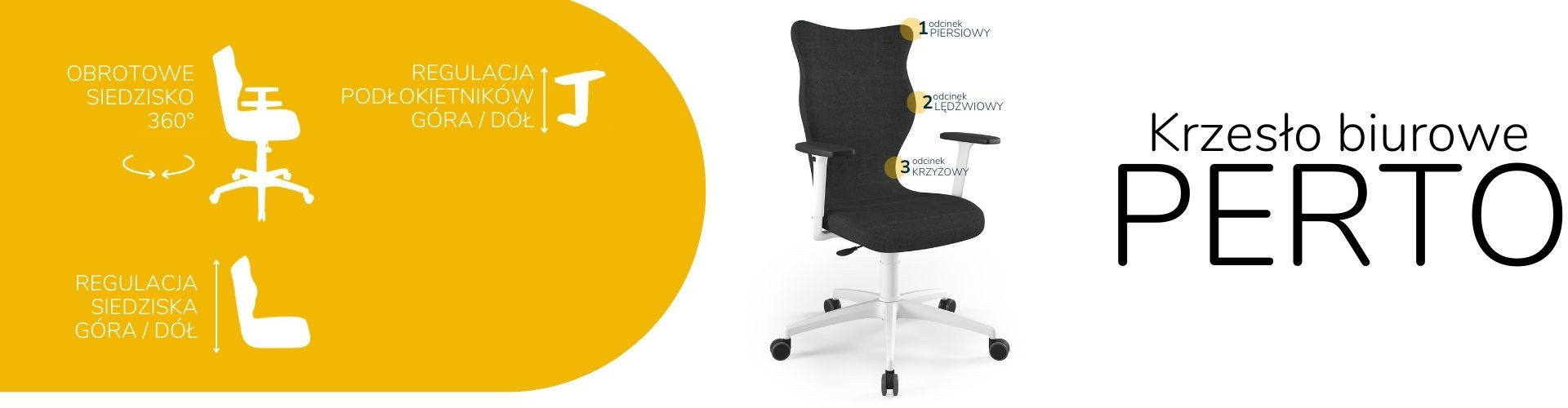 Moderní židle Perto Black je praktické a elegantní řešení přizpůsobené potřebám moderní kanceláře. Při dlouhé práci vsedě jsou velmi důležité správné podmínky. Optimální držení těla je naprosto zásadní, ale důležité jsou také otázky, jako je vzdálenost od monitoru a časté změny polohy. Bílá kancelářská židle Perto, kterou nabízíme, vám umožní efektivně se postarat o všechny tři aspekty najednou. Tím se zvyšuje naše výkonnost a výrazně se snižují negativní účinky sedavého zaměstnání. Kancelářská židle na kolečkách také řeší organizační problémy spojené s uspořádáním a změnou uspořádání prostoru v kanceláři. Můžeme je snadno přemístit nebo přesunout do nižšího či vyššího patra. Nebude nás to stát příliš mnoho úsilí, protože bílá kancelářská židle, kterou jsme navrhli, je velmi lehká.