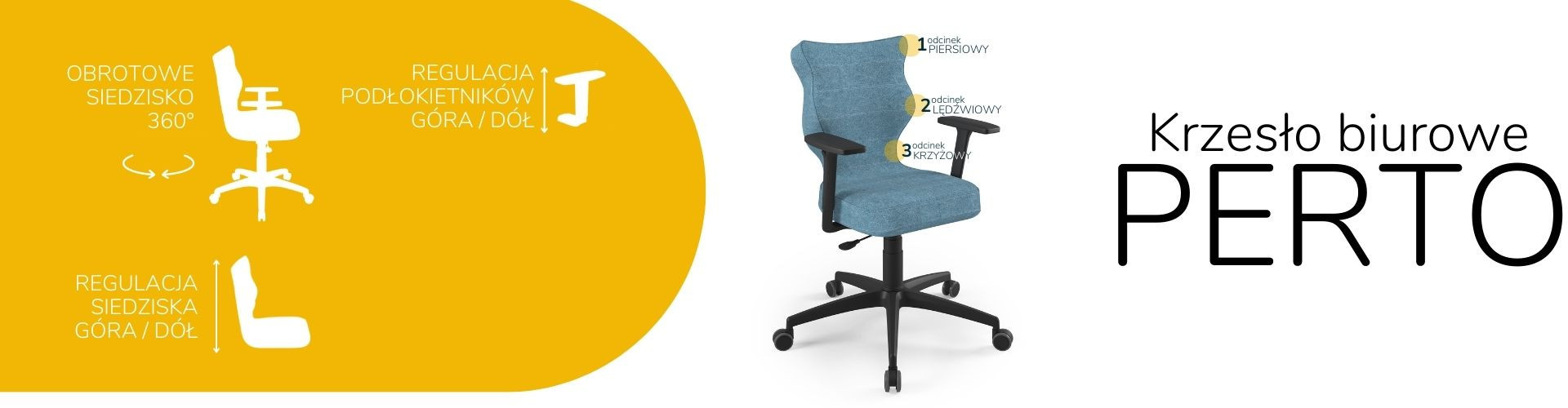 Moderní židle Perto Black je praktické a elegantní řešení přizpůsobené potřebám moderní kanceláře. Při dlouhé práci vsedě jsou velmi důležité správné podmínky. Optimální držení těla je naprosto zásadní, ale důležité jsou také otázky, jako je vzdálenost od monitoru a časté změny polohy. Černá kancelářská židle Perto, kterou nabízíme, vám umožní efektivně se postarat o všechny tři aspekty najednou. Tím se zvyšuje naše výkonnost a výrazně se snižují negativní účinky sedavého zaměstnání. Kancelářská židle na kolečkách také řeší organizační problémy spojené s uspořádáním a změnou uspořádání prostoru v kanceláři. Můžeme je snadno přemístit nebo přesunout do nižšího či vyššího patra. Nebude nás to stát příliš mnoho úsilí, protože černá kancelářská židle, kterou jsme navrhli, je velmi lehká.