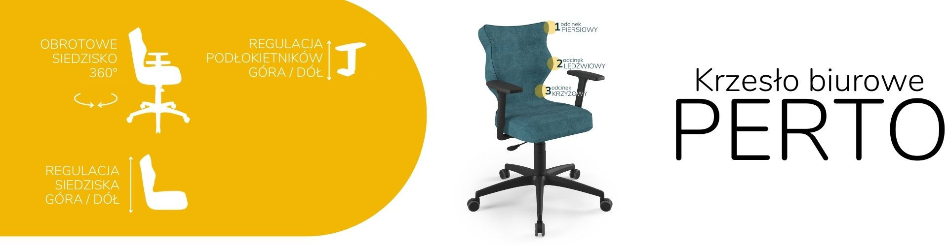 Moderní židle Perto Black je praktické a elegantní řešení přizpůsobené potřebám moderní kanceláře. Při dlouhé práci vsedě jsou velmi důležité správné podmínky. Optimální držení těla je naprosto zásadní, ale důležité jsou také otázky, jako je vzdálenost od monitoru a časté změny polohy. Černá kancelářská židle Perto, kterou nabízíme, vám umožní efektivně se postarat o všechny tři aspekty najednou. Tím se zvyšuje naše výkonnost a výrazně se snižují negativní účinky sedavého zaměstnání. Kancelářská židle na kolečkách také řeší organizační problémy spojené s uspořádáním a změnou uspořádání prostoru v kanceláři. Můžeme je snadno přemístit nebo přesunout do nižšího či vyššího patra. Nebude nás to stát příliš mnoho úsilí, protože černá kancelářská židle, kterou jsme navrhli, je velmi lehká.