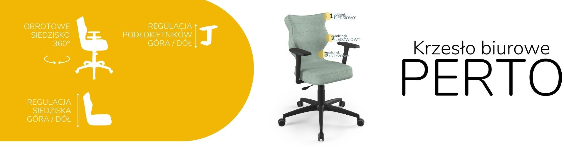 Moderní židle Perto Black je praktické a elegantní řešení přizpůsobené potřebám moderní kanceláře. Při dlouhé práci vsedě jsou velmi důležité správné podmínky. Optimální držení těla je naprosto zásadní, ale důležité jsou také otázky, jako je vzdálenost od monitoru a časté změny polohy. Černá kancelářská židle Perto, kterou nabízíme, vám umožní efektivně se postarat o všechny tři aspekty najednou. Tím se zvyšuje naše výkonnost a výrazně se snižují negativní účinky sedavého zaměstnání. Kancelářská židle na kolečkách také řeší organizační problémy spojené s uspořádáním a změnou uspořádání prostoru v kanceláři. Můžeme je snadno přemístit nebo přesunout do nižšího či vyššího patra. Nebude nás to stát příliš mnoho úsilí, protože černá kancelářská židle, kterou jsme navrhli, je velmi lehká.