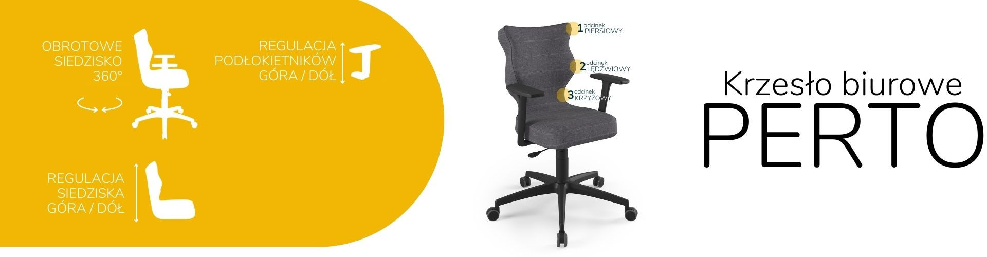 Moderní židle Perto Black je praktické a elegantní řešení přizpůsobené potřebám moderní kanceláře. Při dlouhé práci vsedě jsou velmi důležité správné podmínky. Optimální držení těla je naprosto zásadní, ale důležité jsou také otázky, jako je vzdálenost od monitoru a časté změny polohy. Černá kancelářská židle Perto, kterou nabízíme, vám umožní efektivně se postarat o všechny tři aspekty najednou. Tím se zvyšuje naše výkonnost a výrazně se snižují negativní účinky sedavého zaměstnání. Kancelářská židle na kolečkách také řeší organizační problémy spojené s uspořádáním a změnou uspořádání prostoru v kanceláři. Můžeme je snadno přemístit nebo přesunout do nižšího či vyššího patra. Nebude nás to stát příliš mnoho úsilí, protože černá kancelářská židle, kterou jsme navrhli, je velmi lehká.