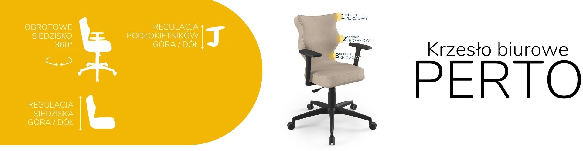 Moderní židle Perto Black je praktické a elegantní řešení přizpůsobené potřebám moderní kanceláře. Při dlouhé práci vsedě jsou velmi důležité správné podmínky. Optimální držení těla je naprosto zásadní, ale důležité jsou také otázky, jako je vzdálenost od monitoru a časté změny polohy. Černá kancelářská židle Perto, kterou nabízíme, vám umožní efektivně se postarat o všechny tři aspekty najednou. Tím se zvyšuje naše výkonnost a výrazně se snižují negativní účinky sedavého zaměstnání. Kancelářská židle na kolečkách také řeší organizační problémy spojené s uspořádáním a změnou uspořádání prostoru v kanceláři. Můžeme je snadno přemístit nebo přesunout do nižšího či vyššího patra. Nebude nás to stát příliš mnoho úsilí, protože černá kancelářská židle, kterou jsme navrhli, je velmi lehká.
