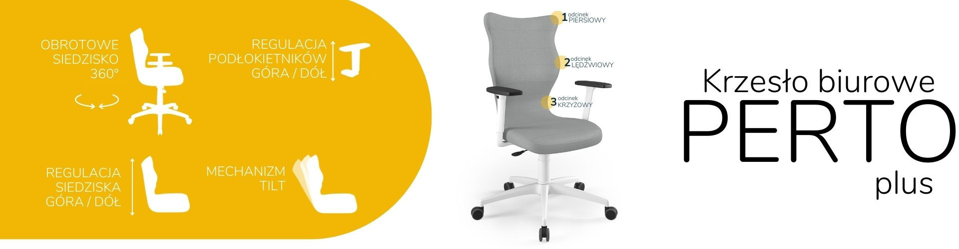 Moderní židle Perto Plus Chair Black je praktické a elegantní řešení přizpůsobené potřebám moderní kanceláře. Při dlouhé práci vsedě jsou velmi důležité správné podmínky. Optimální držení těla je naprosto zásadní, ale důležité jsou také otázky, jako je vzdálenost od monitoru a časté změny polohy. Bílá kancelářská židle Perto Plus, kterou nabízíme, vám umožní efektivně se postarat o všechny tři aspekty najednou. Tím se zvyšuje naše výkonnost a výrazně se snižují negativní účinky sedavého zaměstnání. Kancelářská židle na kolečkách také řeší organizační problémy spojené s uspořádáním a změnou uspořádání prostoru v kanceláři. Můžeme je snadno přemístit nebo přesunout do nižšího či vyššího patra. Nebude nás to stát příliš mnoho úsilí, protože bílá kancelářská židle, kterou jsme navrhli, je velmi lehká.