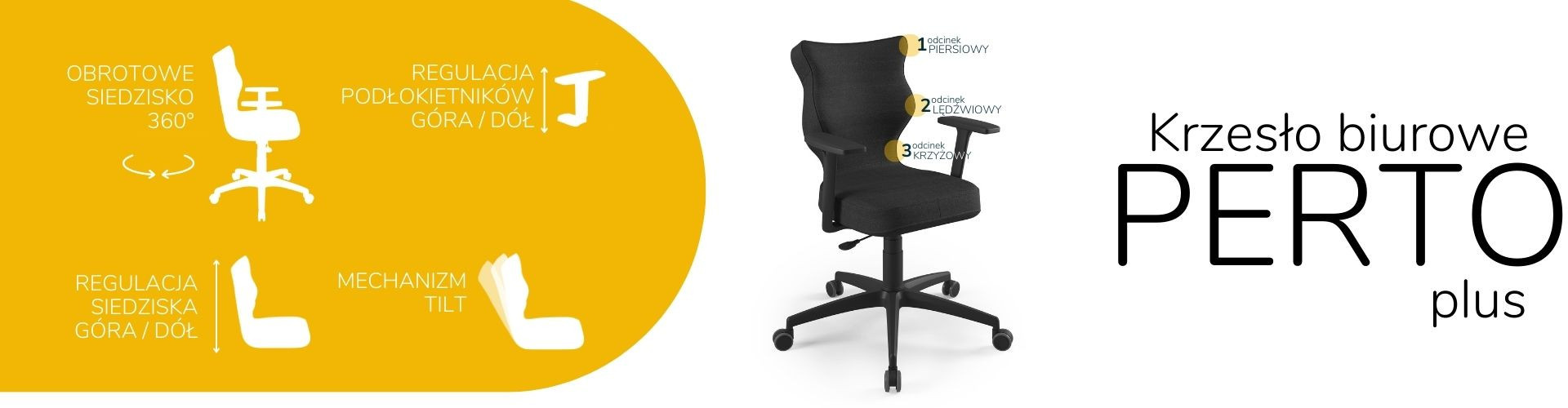 Moderní židle Perto Plus Chair Black je praktické a elegantní řešení přizpůsobené potřebám moderní kanceláře. Při dlouhé práci vsedě jsou velmi důležité správné podmínky. Optimální držení těla je naprosto zásadní, ale důležité jsou také otázky, jako je vzdálenost od monitoru a časté změny polohy. Černá kancelářská židle Perto Plus, kterou nabízíme, vám umožní efektivně se postarat o všechny tři aspekty najednou. Tím se zvyšuje naše výkonnost a výrazně se snižují negativní účinky sedavého zaměstnání. Kancelářská židle na kolečkách také řeší organizační problémy spojené s uspořádáním a změnou uspořádání prostoru v kanceláři. Můžeme je snadno přemístit nebo přesunout do nižšího či vyššího patra. Nebude nás to stát příliš mnoho úsilí, protože černá kancelářská židle, kterou jsme navrhli, je velmi lehká.