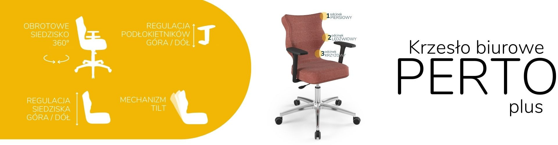 Moderní židle Perto Plus Chair Black je praktické a elegantní řešení přizpůsobené potřebám moderní kanceláře. Při dlouhé práci vsedě jsou velmi důležité správné podmínky. Optimální držení těla je naprosto zásadní, ale důležité jsou také otázky, jako je vzdálenost od monitoru a časté změny polohy. Kancelářská židle Perto Plus s leštěnou podnoží, kterou nabízíme, vám umožní efektivně se postarat o všechny tři aspekty najednou. Tím se zvyšuje naše výkonnost a výrazně se snižují negativní účinky sedavého zaměstnání. Kancelářská židle na kolečkách také řeší organizační problémy spojené s uspořádáním a změnou uspořádání prostoru v kanceláři. Můžeme je snadno přemístit nebo přesunout do nižšího či vyššího patra. Nebude nás to stát příliš mnoho úsilí, protože námi navržená leštěná kancelářská židle je velmi lehká.