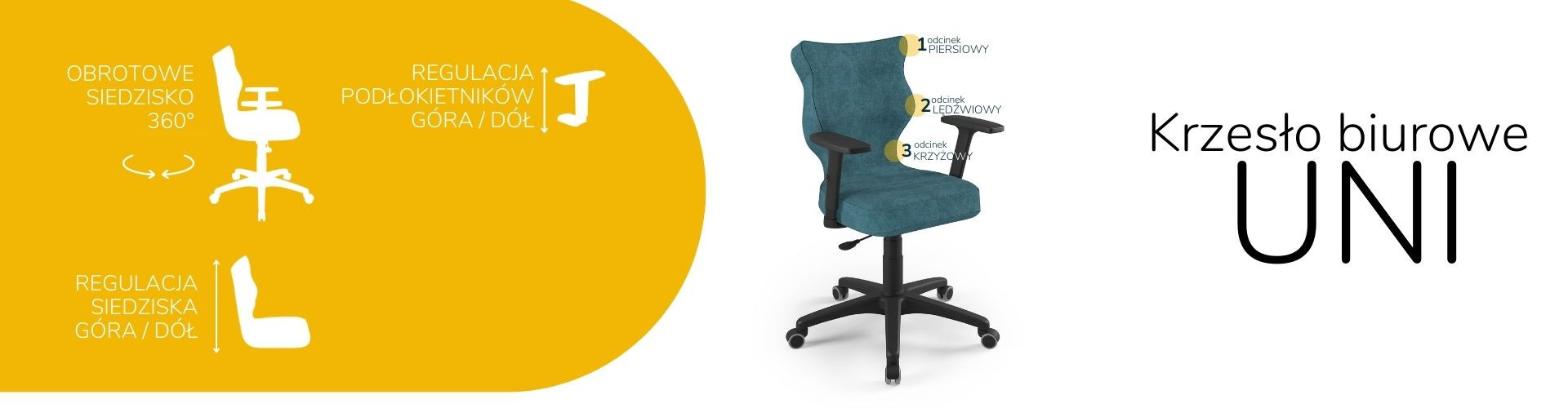 Židle Uni je ergonomická kancelářská židle, která byla navržena pro lidi pracující vsedě. Čalouněná kancelářská židle Uni je vybavena měkkým a pohodlným sedákem, který poskytuje dostatečné pohodlí osobám sedícím u stolu po mnoho hodin. Kancelářská židle Uni je navíc vybavena speciálně tvarovaným opěradlem, které zmírňuje namáhání páteře. Konstrukce a tvar opěradla jsou profilovány tak, aby nedocházelo k přetěžování páteře a aby se zabránilo vadám držení těla, jako je skolióza. Profilovaná kancelářská židle poskytuje nejen stabilní oporu zádům sedícího, ale také ovlivňuje správnou polohu zad. Měkké plastové sedadlo netlačí na nohy a je pohodlné i při několikahodinové práci v jedné poloze.