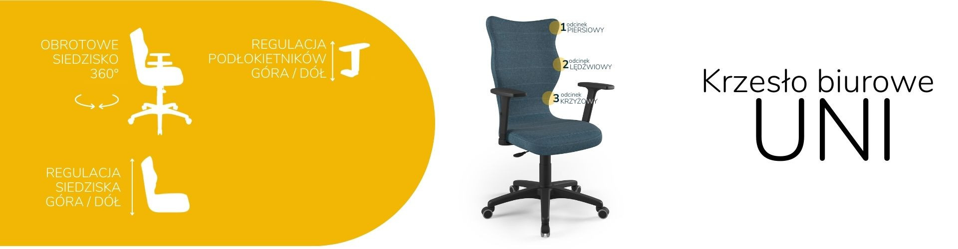 Židle Uni je ergonomická kancelářská židle, která byla navržena pro lidi pracující vsedě. Čalouněná kancelářská židle Uni je vybavena měkkým a pohodlným sedákem, který poskytuje dostatečné pohodlí osobám sedícím u stolu po mnoho hodin. Kancelářská židle Uni je navíc vybavena speciálně tvarovaným opěradlem, které zmírňuje namáhání páteře. Konstrukce a tvar opěradla jsou profilovány tak, aby nedocházelo k přetěžování páteře a aby se zabránilo vadám držení těla, jako je skolióza. Profilovaná kancelářská židle poskytuje nejen stabilní oporu zádům sedícího, ale také ovlivňuje správnou polohu zad. Měkké plastové sedadlo netlačí na nohy a je pohodlné i při několikahodinové práci v jedné poloze.