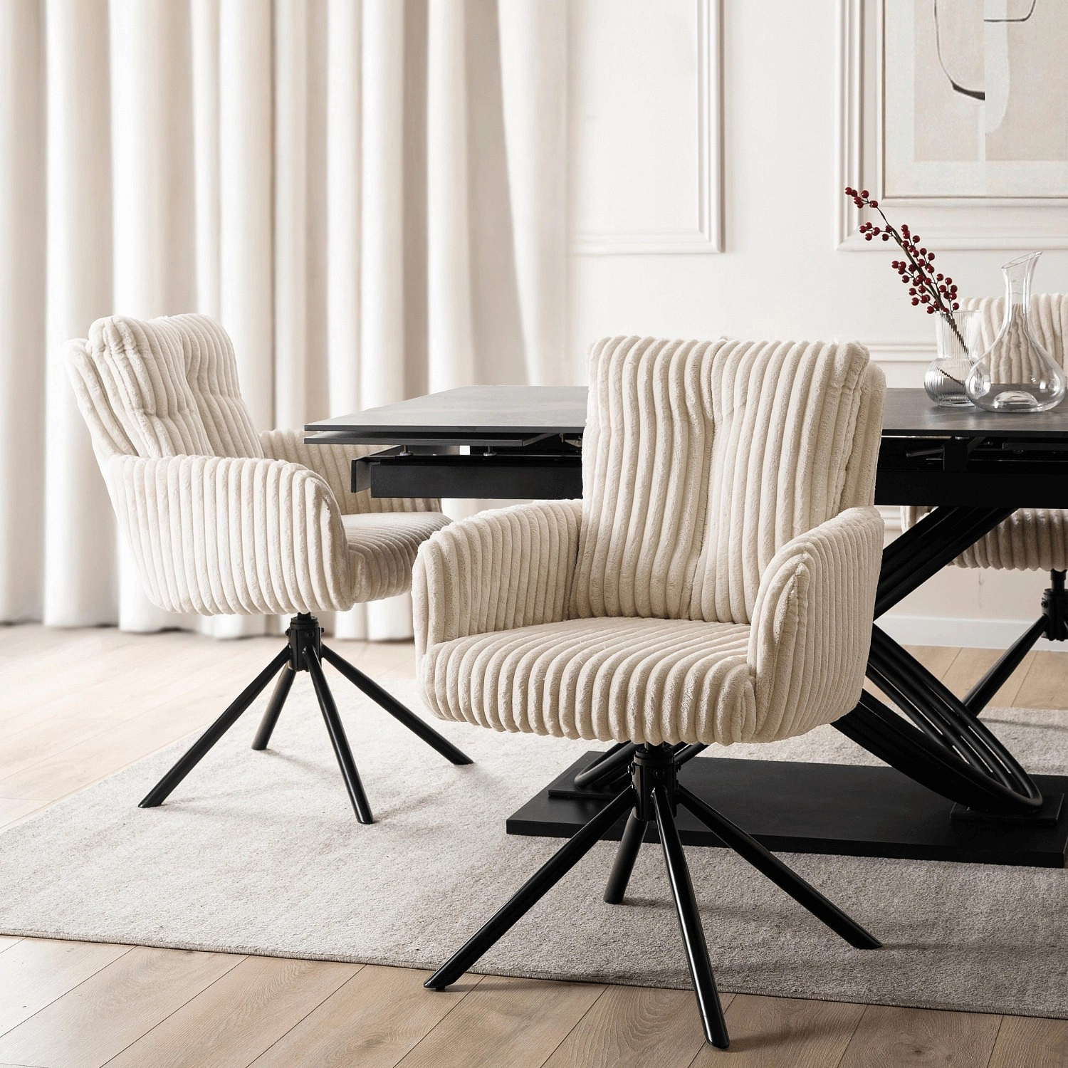 Otočné křeslo do obývacího pokoje JUNE Krémové manšestrové