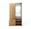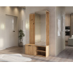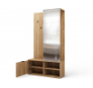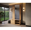 Chodbaová skříň Oturra je moderní, štíhlý kus nábytku, který kombinuje věšák na kabáty, zrcadlo a úložný prostor na boty v jednom elegantním celku. Se šířkou 100 cm, výškou 189 cm a hloubkou 35 cm funguje отлично i v úzké chodbě, což pomáhá udržovat vstupní prostor uklizený. Horní část obsahuje lištu pro ramínka na bundy a kabáty, spolu s kovovým nábytkovým háčkem na doplňky, zatímco spodní část nabízí praktickou skříňku a dvě police na boty nebo jiné předměty. Šatní skříň Oturra je vyrobena z odolné laminované desky: čela, korpus a zadní/vnitřní panely jsou všechny vyrobeny ze stejného materiálu a hrany jsou zakončeny PVC, což zvyšuje odolnost proti poškození a usnadňuje čištění. Korpus a police jsou silné 16 mm a celá jednotka váží 53 kg, což zajišťuje stabilitu a pevnou kvalitu po mnoho let. Je to ideální volba, pokud hledáte funkční minimalistickou předsíňovou skříň se zrcadlem, tyčí na oblečení a úložným prostorem na boty.