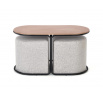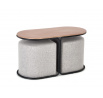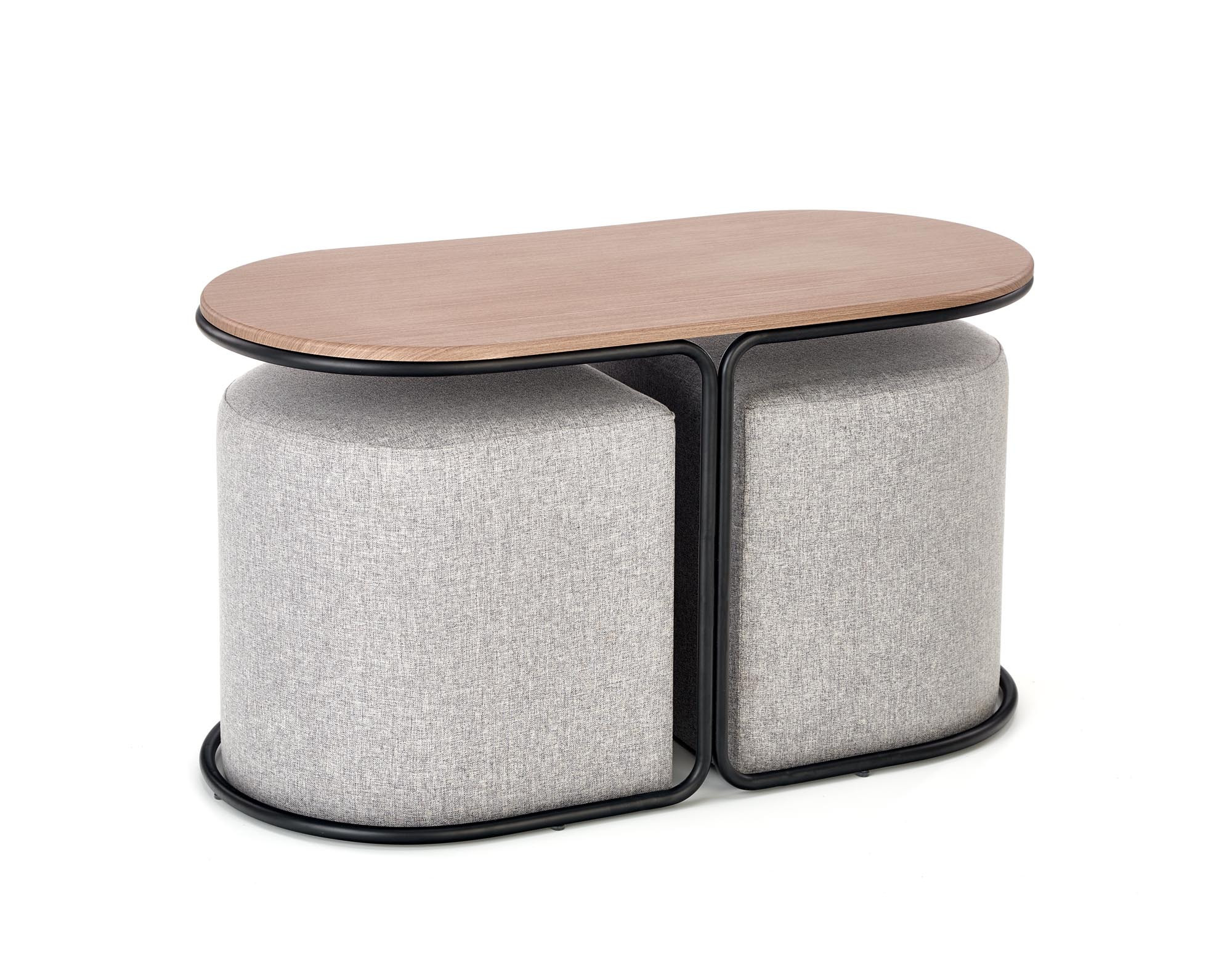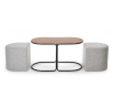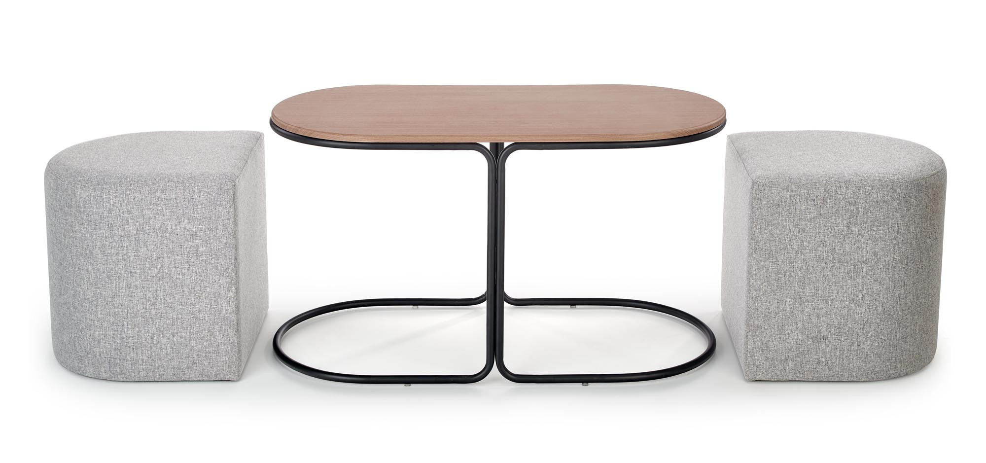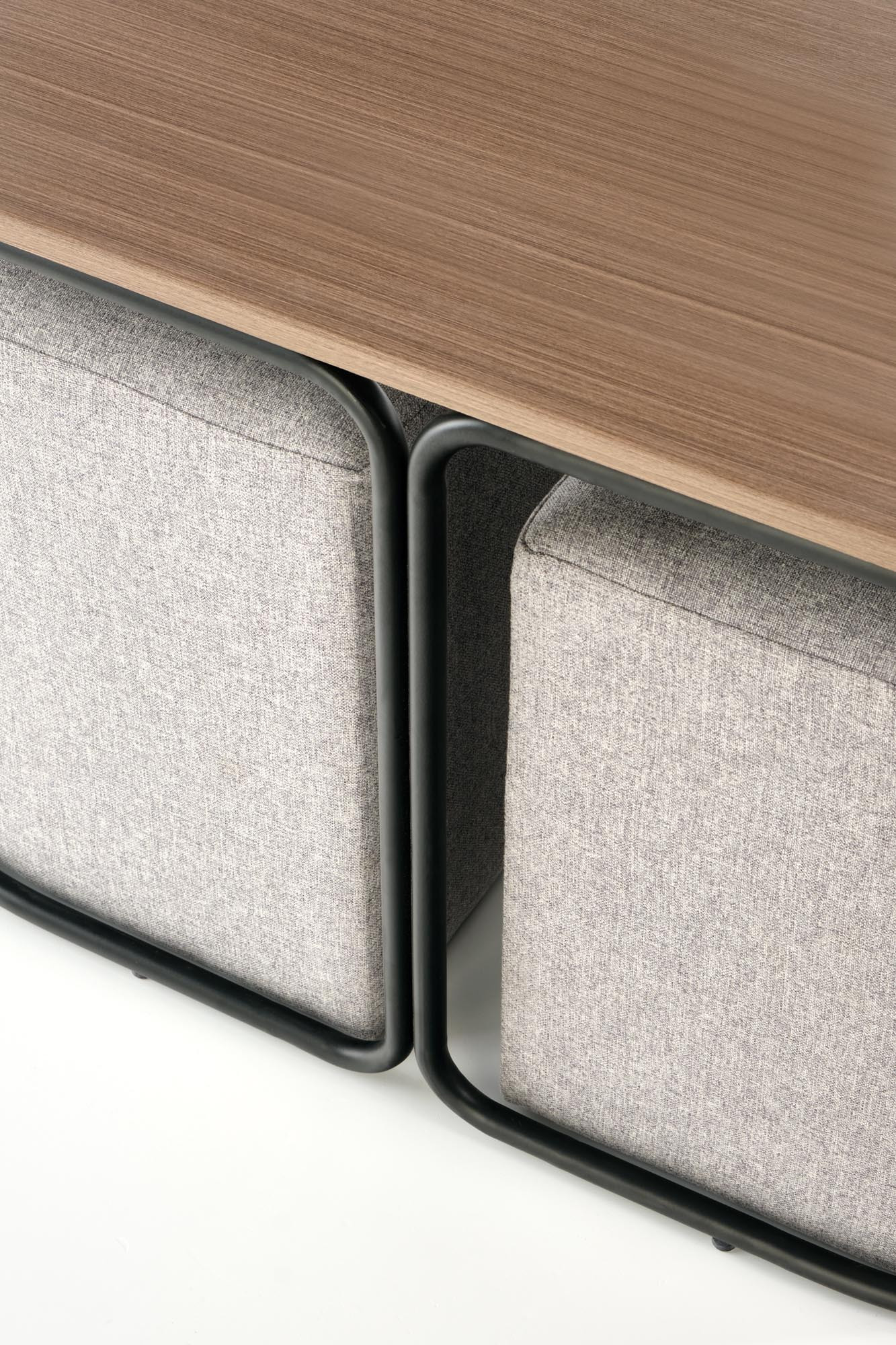 rozměr: 88/43/49 cm, lavice s pufy, Materiál: MDF dýha / práškově lakovaná ocel / tkanina, Barva: ořech - šedá - černá