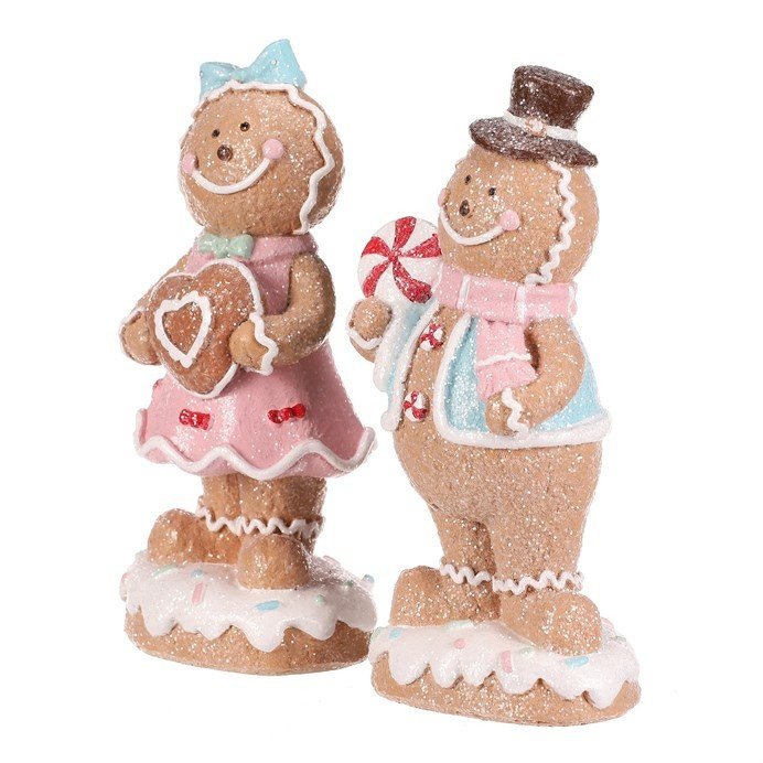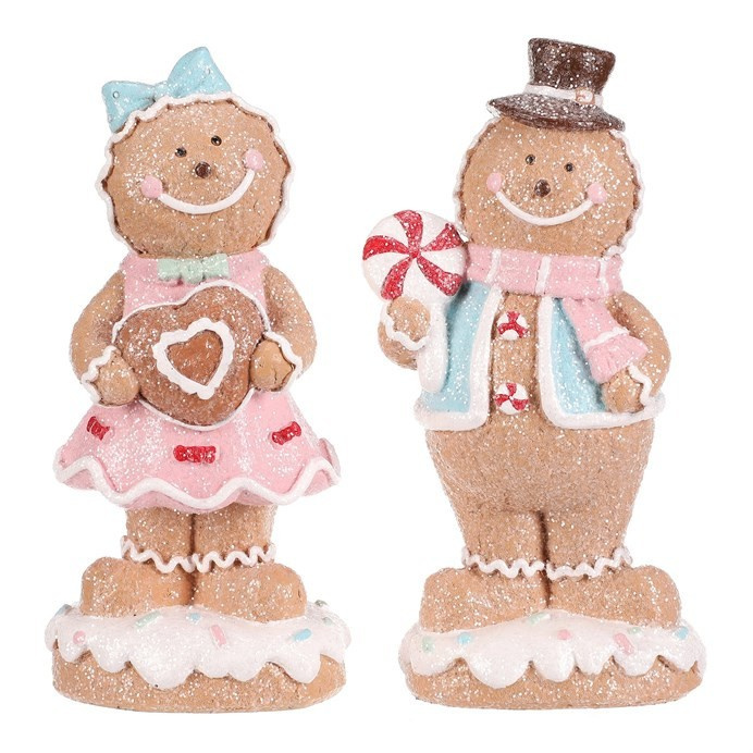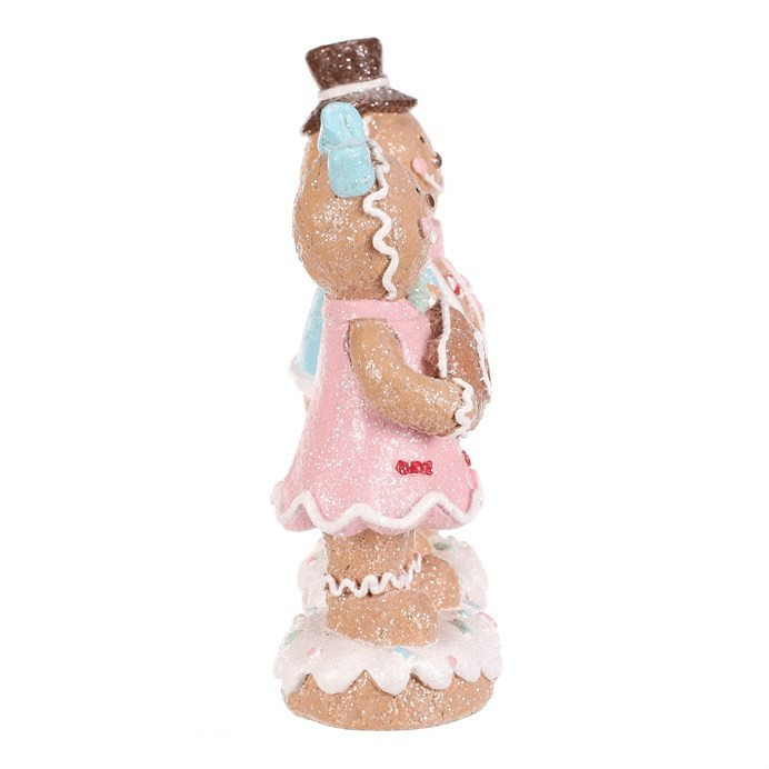 Perníkový panáček z polyresinu v pestrobarevném provedení přináší do vaší vánoční výzdoby hravý a veselý nádech. Mix dvou druhů – holčička v růžových šatech a chlapeček s vestou a kloboukem – je perfektní volbou pro rozjasnění vašeho domova ve svátečním čase.