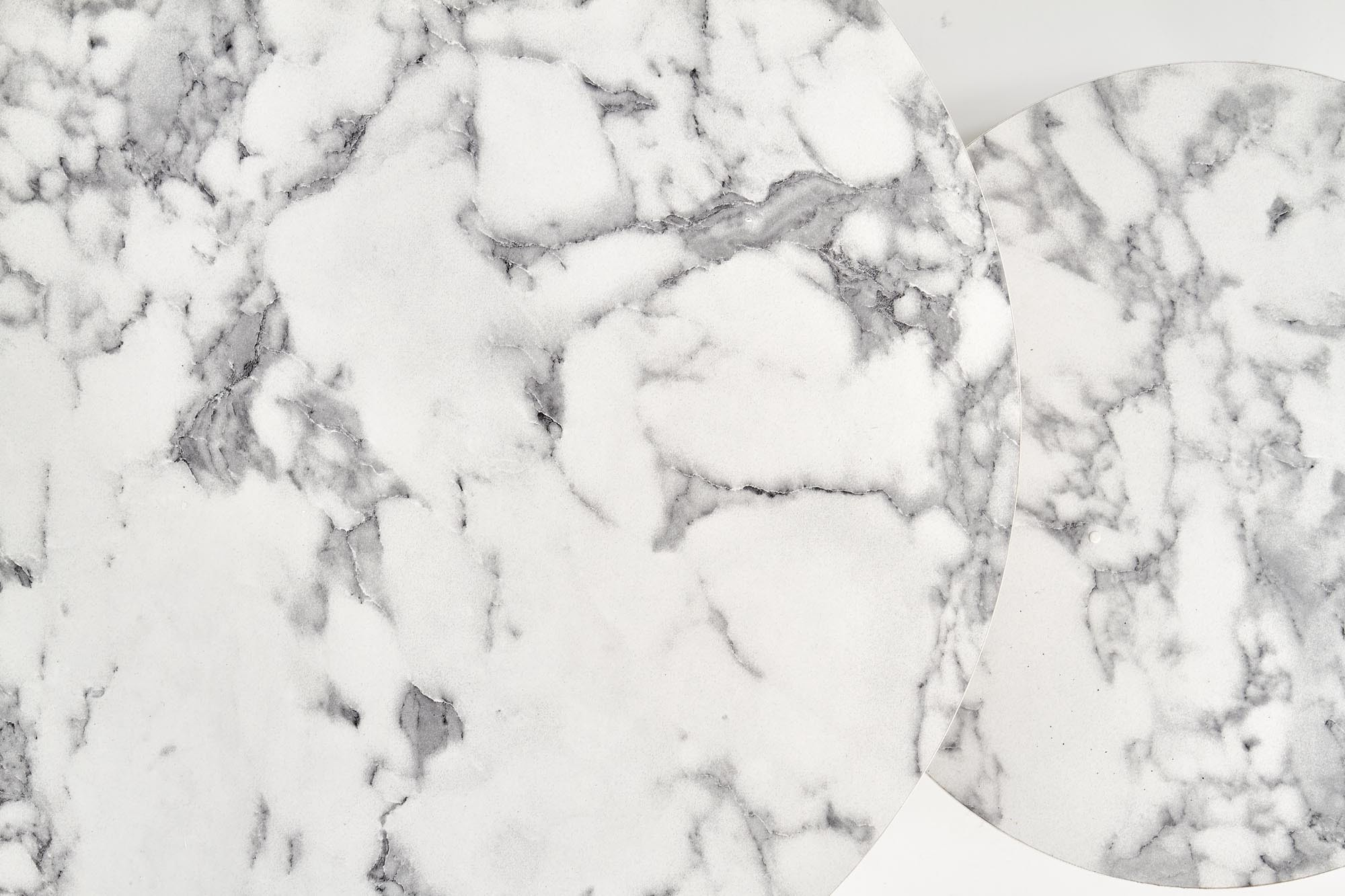 rozměry: 60/40 a 38/34 cm, materiál: MDF dýha / práškově lakovaná ocel, barva: mramor - zlatá