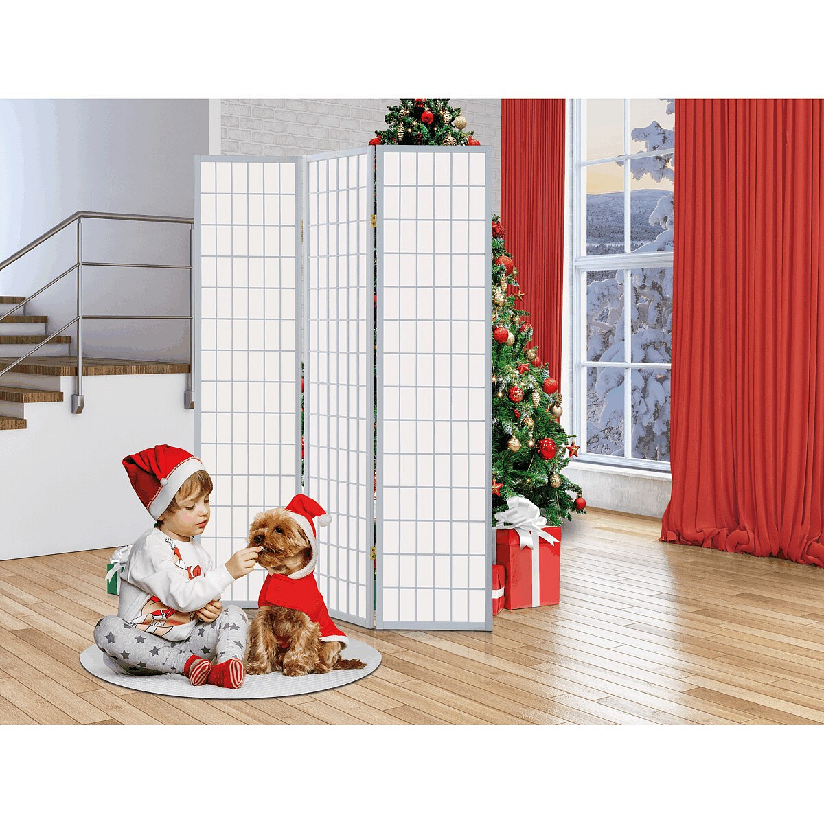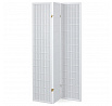 3dílný volně stojící paraván s konstrukcí z masivního smrkového dřeva v bílé barvě Výplň z bílé netkané textilie. Plní nejen funkci okrasnou, ale také praktickou. Lze jej použít jako zástěnu nebo diskrétní i optickou dělící příčku nejen v bytě, ale i v komerčních prostorách. Díky skládací konstrukci a celkové nízké hmotnosti jej lze bez problémů přemísťovat a manipulovat s ním. Kombinace dřeva a netkané textilie působí vzdušným dojmem, stylově lze paraván umístit do jakkoli zařízeného interiéru. V každém si najde zasloužené místo. Výška paravánu je 178 cm, šíře jednoho dílu 43,5 cm, celková plná šíře je 132 cm. Tloušťka stěny jsou 2 cm. Stěny paravánu jsou k sobě připevněny kovovými pomosazenými panty. Celková hmotnost je 5 kg.