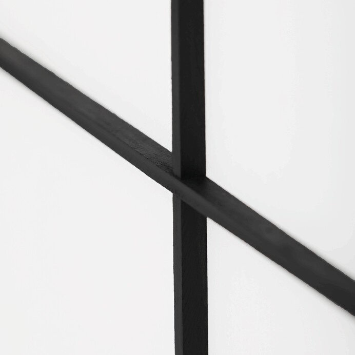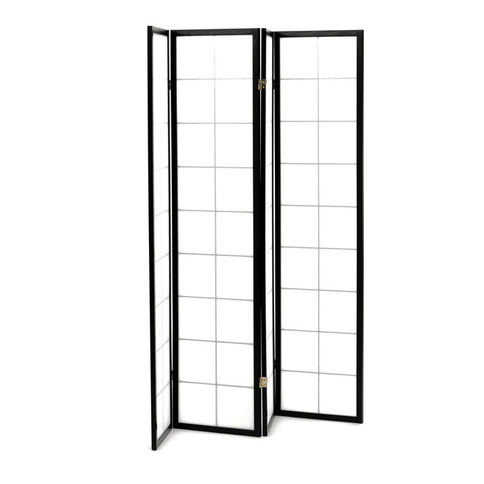 4dílný volně stojící paraván s konstrukcí z masivního smrkového dřeva v černé barvě a výplní z bílé netkané textilie. Plní nejen funkci okrasnou, ale také praktickou. Lze jej použít jako zástěnu nebo diskrétní i optickou dělící příčku nejen v bytě, ale i v komerčních prostorách. Díky skládací konstrukci a celkové nízké hmotnosti jej lze bez problémů přemísťovat a manipulovat s ním. Kombinace dřeva a netkané textilie působí vzdušným dojmem, stylově lze paraván umístit do jakkoli zařízeného interiéru. V každém si najde zasloužené místo. Výška paravánu je 178 cm, šíře jednoho dílu 43,5 cm, celková plná šíře je 176 cm. Tloušťka stěny jsou 2 cm. Stěny paravánu jsou k sobě připevněny kovovými pomosazenými panty. Celková hmotnost je 6,5 kg.