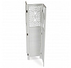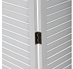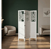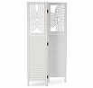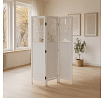 Třípanelový paraván vyrobený z masivního smrkového dřeva v bílé barvě nabízí praktické řešení pro rozdělení prostoru v interiéru. Každý díl je doplněn dekorativními výřezy v horní části, které propouštějí světlo a zároveň zachovávají soukromí. Masivní materiál zajišťuje pevnost a stabilitu, zatímco přírodní textura dřeva dodává výrobku přirozený vzhled. Paraván je vhodný pro použití v obývacích pokojích, ložnicích nebo kancelářích, kde pomáhá vytvořit útulné a funkční prostředí. Díky skládací konstrukci je snadno přemístitelný a skladovatelný.