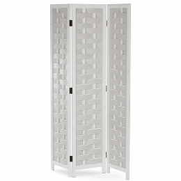 Třídílný paraván vyrobený z masivního smrkového dřeva v bílé barvě nabízí praktické řešení pro rozdělení prostoru i dekorativní doplněk interiéru. Každá z částí je spojena kovovými panty, které umožňují snadné skládání a nastavení úhlu podle potřeby. Povrchová úprava zdůrazňuje přirozenou strukturu dřeva a zároveň usnadňuje údržbu. Paraván je stabilní a díky masivnímu provedení navržen pro dlouhou životnost. Je vhodný do různých typů interiérů, kde přispívá k vytvoření soukromí nebo optickému oddělení zón. Rozměr jednoho dílu 40x171cm.
