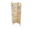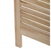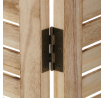 Třídílný dřevěný paraván z masivu smrku v přírodním odstínu kombinuje pevné provedení s dekorativní perforací horní části, která vytváří zajímavý vizuální efekt. Každá část je spojena kovovými panty umožňujícími flexibilní nastavení úhlu a snadné přenášení či skladování. Paraván slouží jako praktický prvek pro rozdělení prostoru nebo zvýšení soukromí v interiéru, přičemž přírodní dřevěný dekor přináší do místnosti teplý a přirozený vzhled. Povrch je upraven tak, aby materiál byl snadno udržovatelný a odolný vůči běžnému opotřebení. Rozměry a konstrukce zajišťují stabilitu a dlouhou životnost produktu.