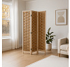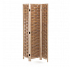 Třídílný paraván vyrobený z masivního smrkového dřeva v přírodním odstínu nabízí praktické řešení pro rozdělení prostoru či vytvoření soukromí. Jeho pevné rámy jsou doplněny propletenými PVC pásky, které vytvářejí zajímavý vzor a zároveň propouštějí světlo. Díky skládací konstrukci s kovovými panty je možné paraván snadno přemístit a přizpůsobit podle potřeby. Přírodní povrchová úprava zdůrazňuje texturu dřeva a umožňuje snadnou údržbu. Rozměry jednotlivých dílů jsou navrženy tak, aby paraván stabilně stál a zároveň byl dostatečně lehký pro manipulaci. Rozměr jednoho dílu 40x171cm.