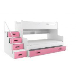 Tato patrová postel je určená především pro osoby, které ocení moderní design, funkčnost a spoustu úložných prostorů. Patentované provedení a stabilní konstrukce postele Vám zaručuje bezpečí pro Vaše děti. Schody v sobě ukrývají spoustu úložného prostoru. Na velké spodní matraci, se mohou vyspat i 2 osoby. Barevné provedení je matné a schůdky lze dat jak na pravou tak i levou stranu při montáži.