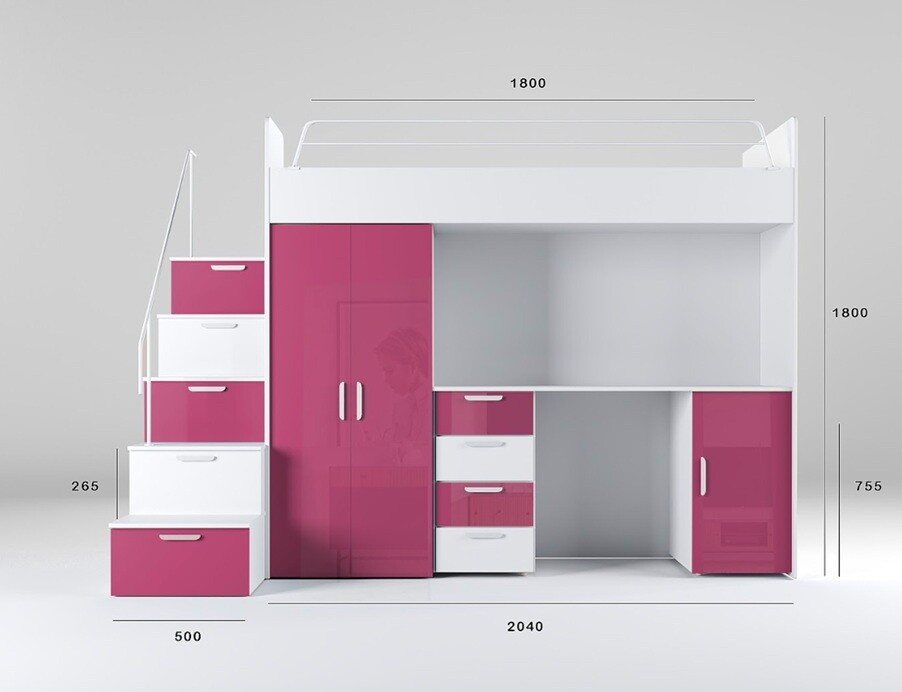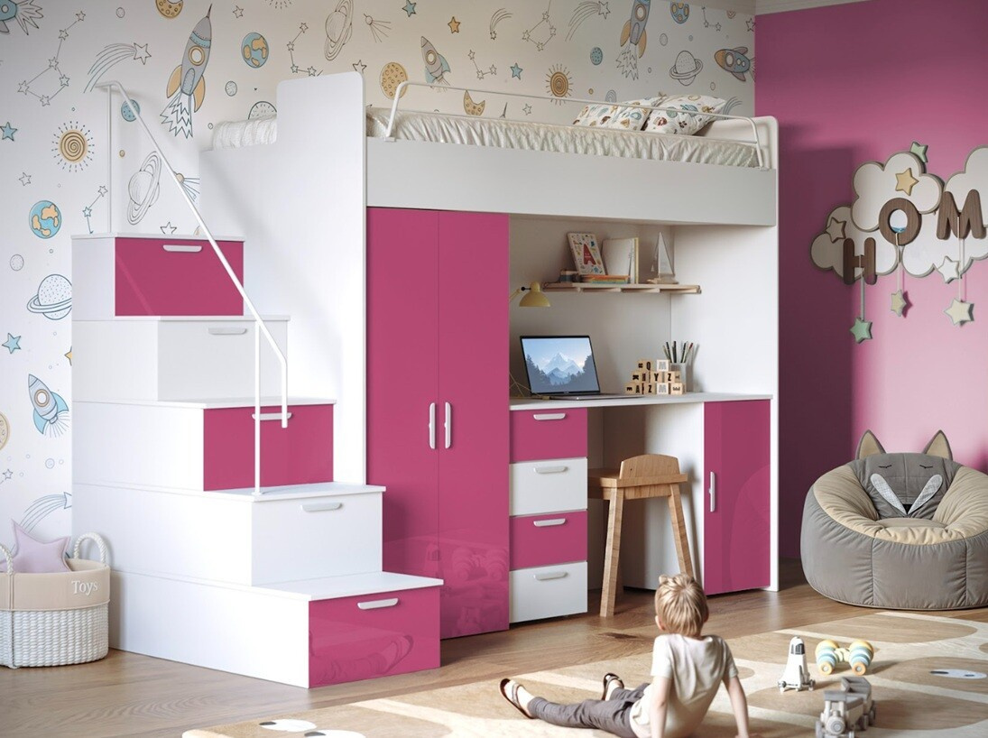 Patrová postel PARADISE 4S, Bílá Růžová lesk