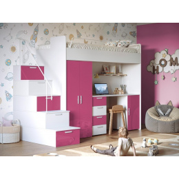 Tato patrová postel je určená především pro osoby, které ocení moderní design a funkčnost. Patentované provedení a stabilní konstrukce postele Vám zaručuje bezpečí pro Vaše děti. Barevné provedení dvířek je v lesku. Strana umístění žebříku je universální, tzn., že při montáži si sami určíte umístění žebříku. Stejně tak je možné u montáže psacího stolu si určit, po které straně si přejete mít šuplíky. V ceně postele není obsažen lamelový rošt ani matrace, jsou volitelnými parametry. Nosnost lůžka je 80 kg. K této posteli je možnost dokoupit další nábytek a utvořit tak krásný pokoj jak pro menší dítě tak i pro odrostlejší děti.