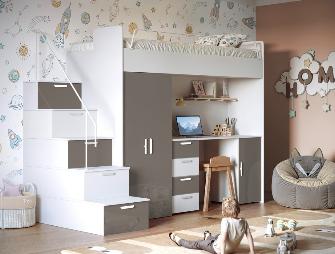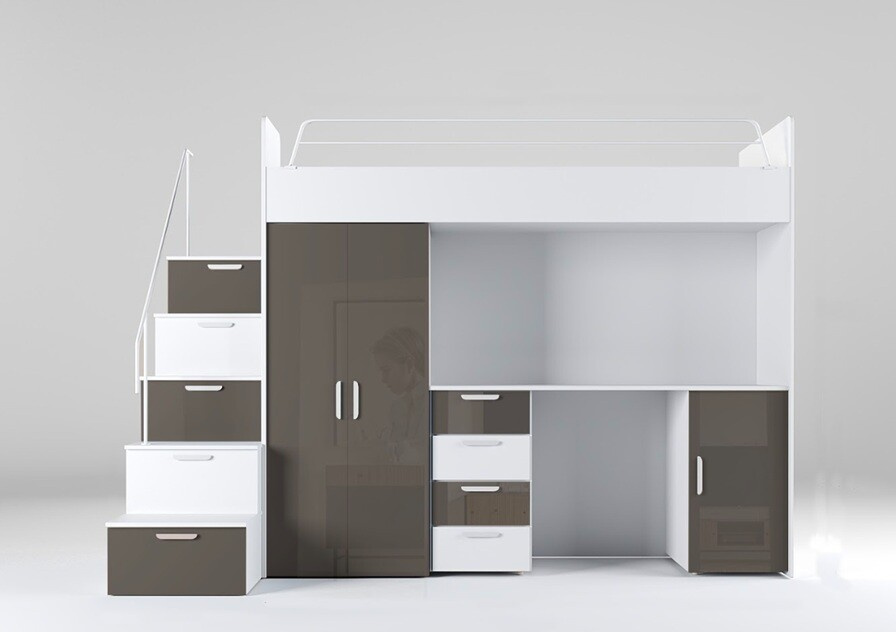 Patrová postel PARADISE 4S, Bílá Šedá lesk