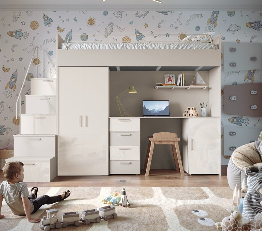 Patrová postel PARADISE 4S Kašmír + Lesk je skvělou volbou pro každého, kdo hledá stylové a praktické řešení pro dětský pokoj. Její moderní design, kvalitní materiály a praktické vlastnosti z ní činí ideální investici do pohodlí a estetiky vašeho domova.