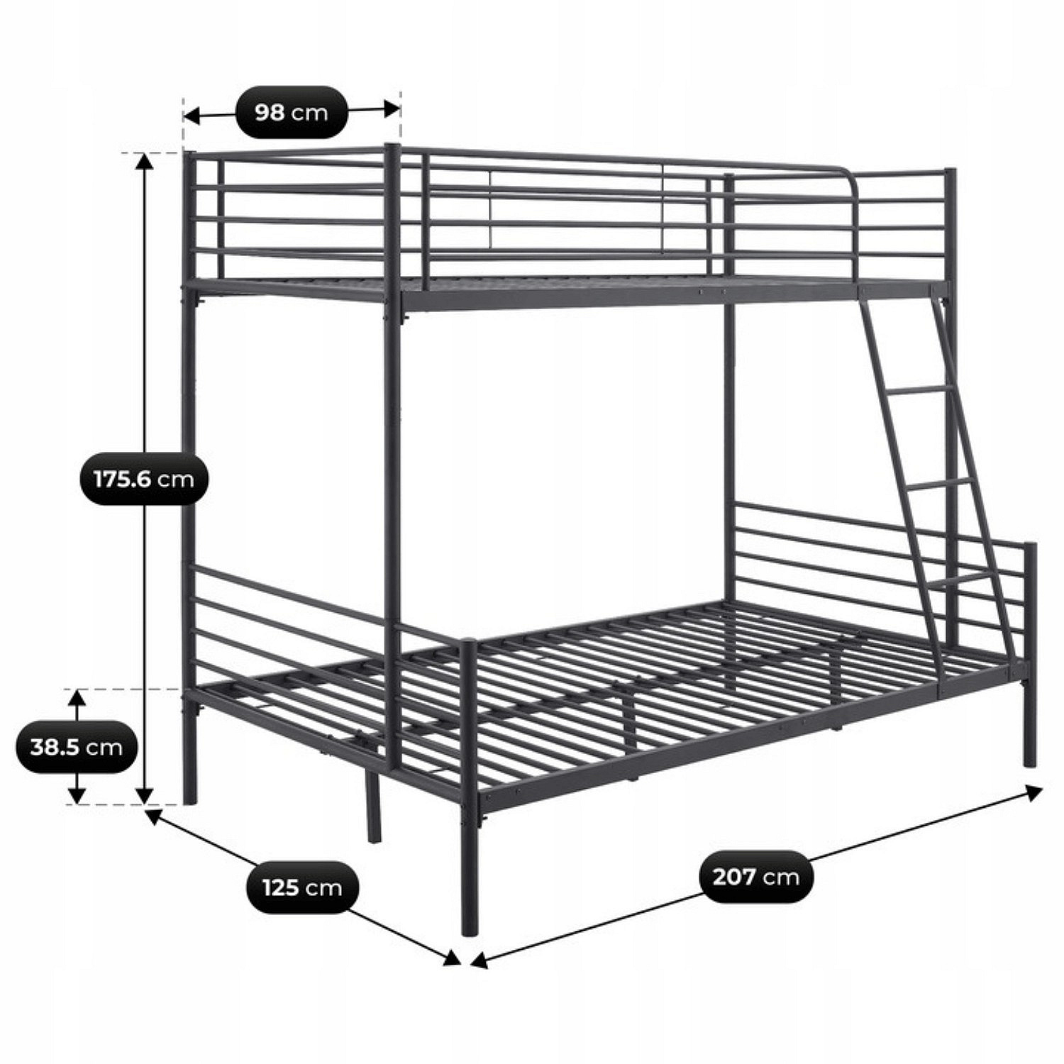 Patrová postel TRES 90x200 Mládežnická Černá 2v1