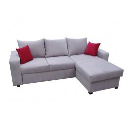 Rohová sedací souprava PEPE, Levá, světle šedá/červené polštářky