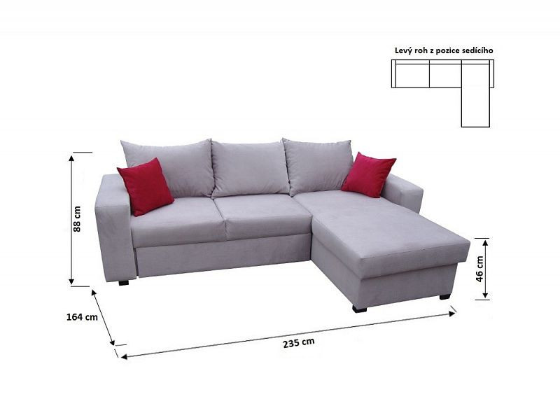 Sedačka je rozkládací a má úložný prostor. Po rozložení vznikne spací plocha o rozměrech 138 x 193 cm.