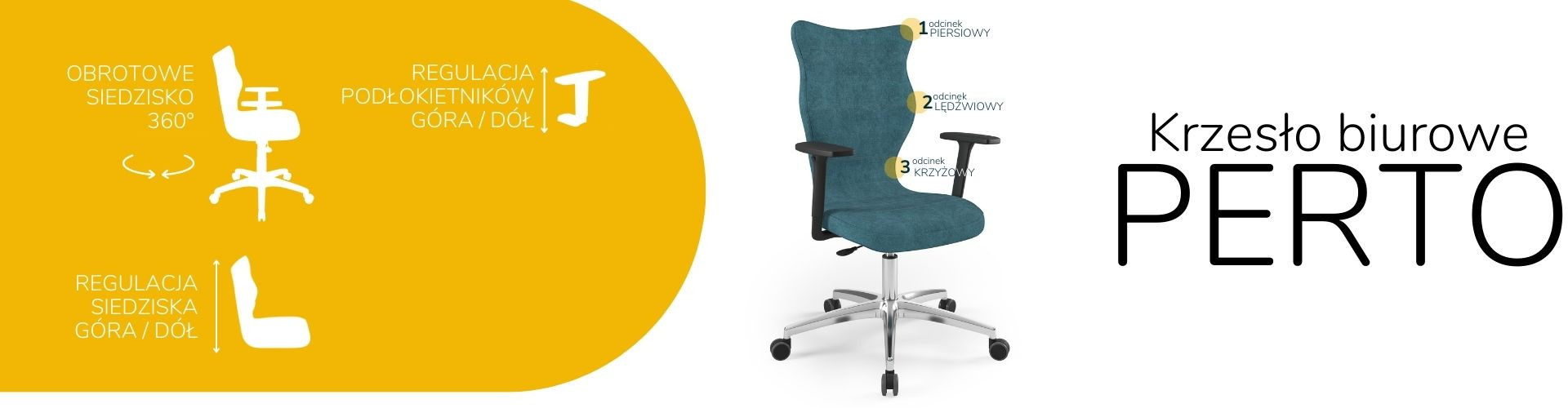 Moderní židle Perto Black je praktické a elegantní řešení přizpůsobené potřebám moderní kanceláře. Při dlouhé práci vsedě jsou velmi důležité správné podmínky. Optimální držení těla je naprosto zásadní, ale důležité jsou také otázky, jako je vzdálenost od monitoru a časté změny polohy. Kancelářská židle Perto s leštěnou podnoží, kterou nabízíme, vám umožní efektivně se postarat o všechny tři aspekty najednou. Tím se zvyšuje naše výkonnost a výrazně se snižují negativní účinky sedavého zaměstnání. Kancelářská židle na kolečkách také řeší organizační problémy spojené s uspořádáním a změnou uspořádání prostoru v kanceláři. Můžeme je snadno přemístit nebo přesunout do nižšího či vyššího patra. Nebude nás to stát příliš mnoho úsilí, protože námi navržená leštěná kancelářská židle je velmi lehká.