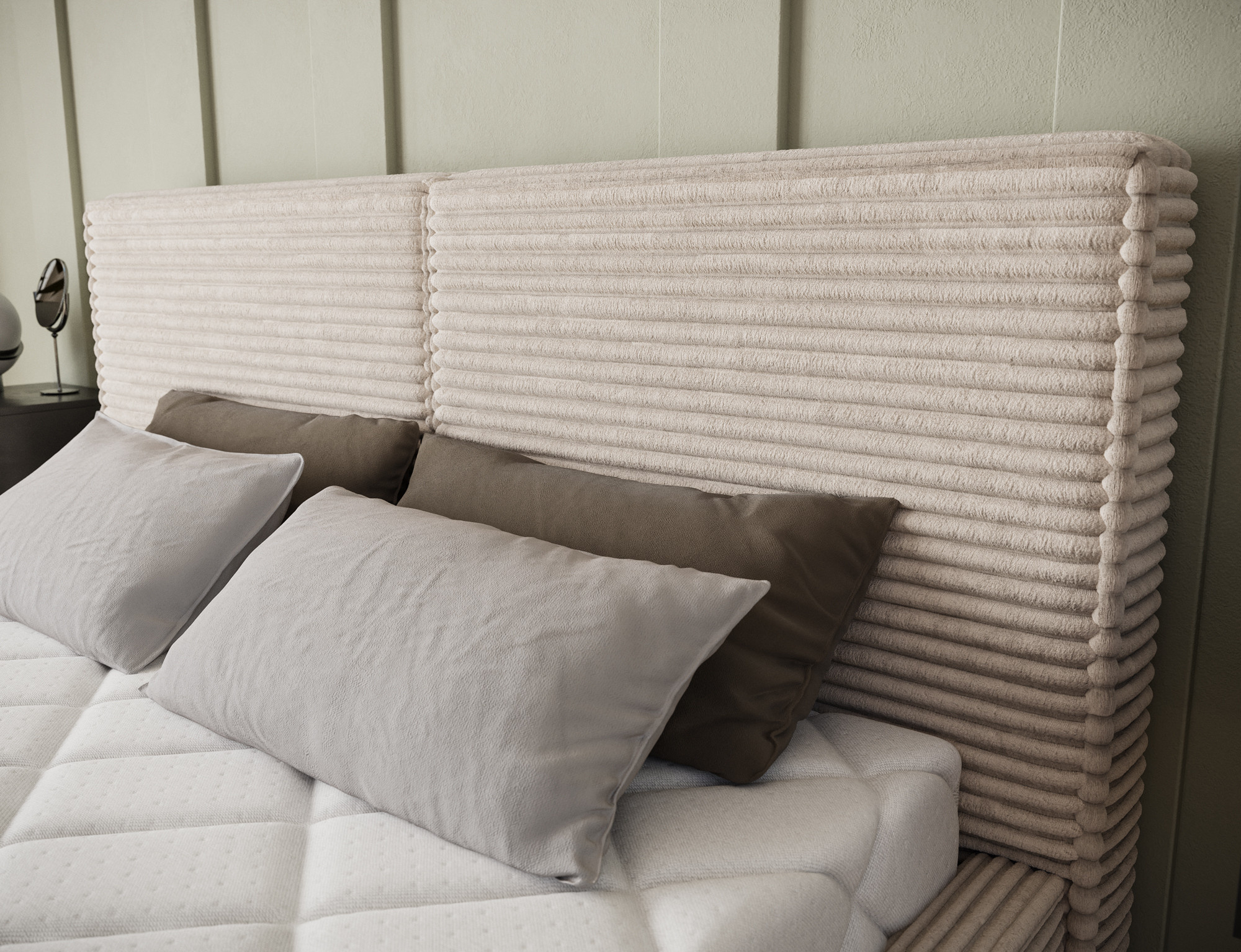 Postel do ložnice Pesillo kombinuje eleganci a funkčnost v moderním designu. Model je k dispozici ve třech velikostních variantách: 140x200 cm, 160x200 cm a 180x200 cm, což vám umožní dokonale přizpůsobit postel rozměrům vaší ložnice a vašim individuálním potřebám. Celková výška postele je 103 cm, zatímco její hloubka měří 220 cm. Šířka závisí na vybraném modelu a je 158 cm, 178 cm nebo 198 cm. Pěnová výplň T2130 zajišťuje pohodlí a odolnost, zatímco robustní černé plastové nohy nábytku poskytují stabilitu a elegantní vzhled. Postel Pesillo je vybavena praktickým úložným prostorem na lůžkoviny, což umožňuje efektivní využití prostoru a snadnou organizaci. Navržen v moderním stylu, dokonale zapadá do současných trendů interiérového designu, vytváří útulnou a elegantní atmosféru ideální pro relaxaci.