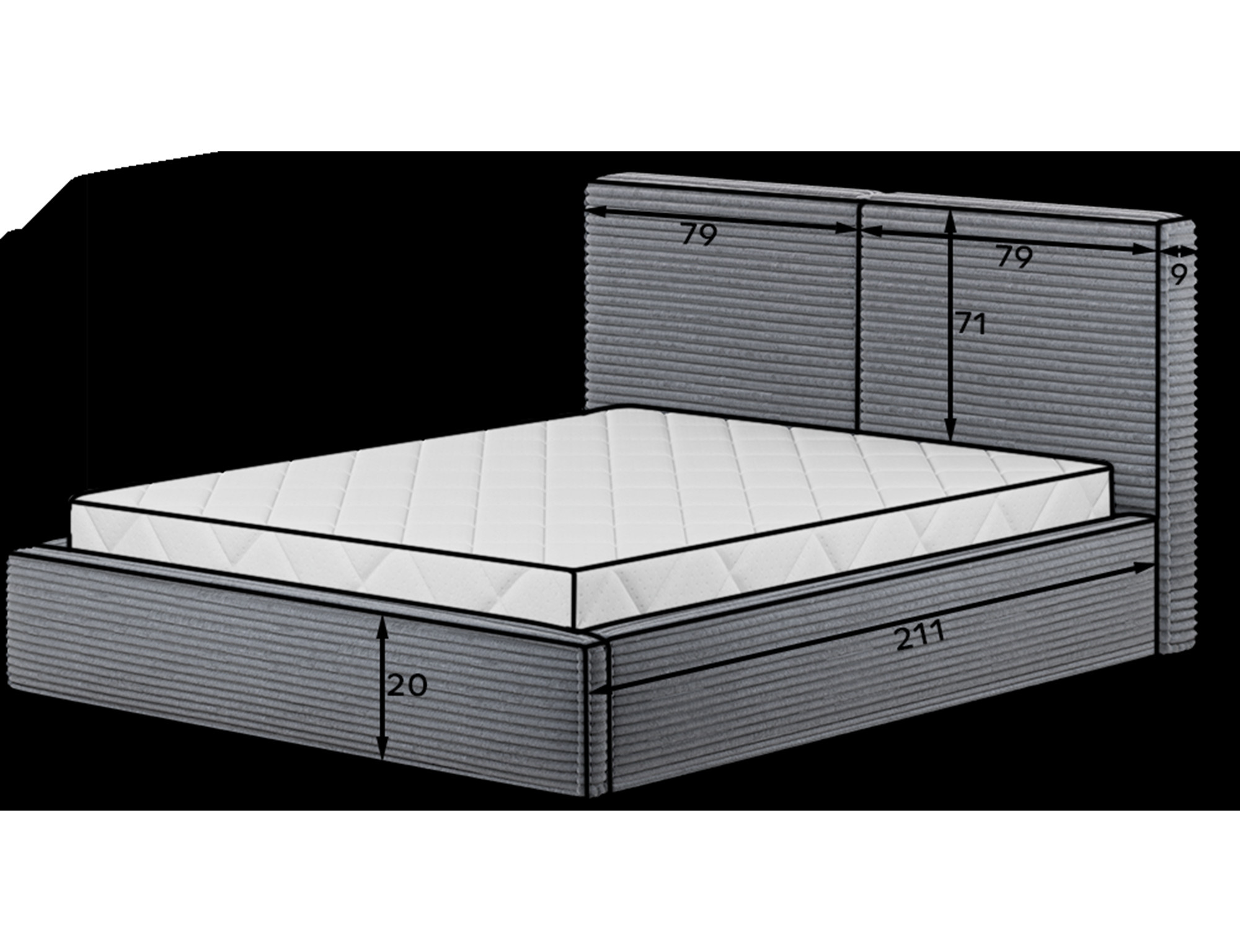 Postel do ložnice Pesillo kombinuje eleganci a funkčnost v moderním designu. Model je k dispozici ve třech velikostních variantách: 140x200 cm, 160x200 cm a 180x200 cm, což vám umožní dokonale přizpůsobit postel rozměrům vaší ložnice a vašim individuálním potřebám. Celková výška postele je 103 cm, zatímco její hloubka měří 220 cm. Šířka závisí na vybraném modelu a je 158 cm, 178 cm nebo 198 cm. Pěnová výplň T2130 zajišťuje pohodlí a odolnost, zatímco robustní černé plastové nohy nábytku poskytují stabilitu a elegantní vzhled. Postel Pesillo je vybavena praktickým úložným prostorem na lůžkoviny, což umožňuje efektivní využití prostoru a snadnou organizaci. Navržen v moderním stylu, dokonale zapadá do současných trendů interiérového designu, vytváří útulnou a elegantní atmosféru ideální pro relaxaci.