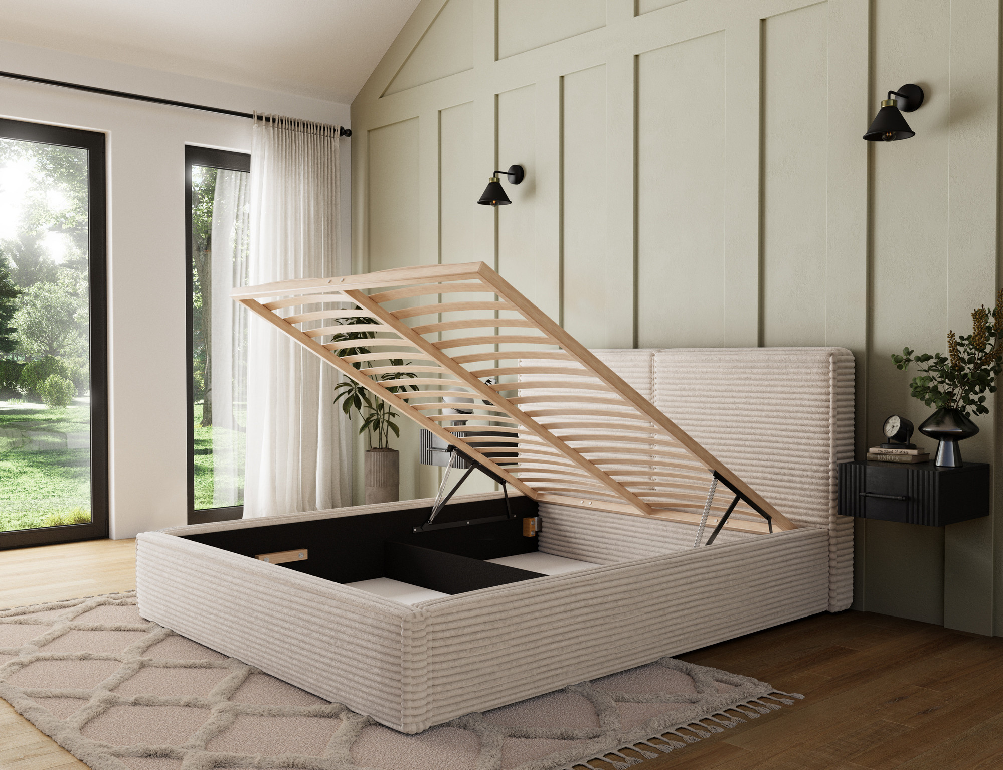 Pesillo postel + dřevěný rám / standardní zvedání / úložný box na lůžkoviny 160x200 Modullo 18 1