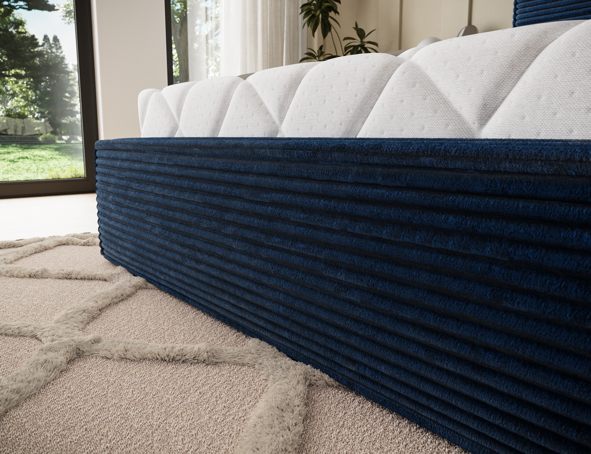 Postel do ložnice Pesillo kombinuje eleganci a funkčnost v moderním designu. Model je k dispozici ve třech velikostních variantách: 140x200 cm, 160x200 cm a 180x200 cm, což vám umožní dokonale přizpůsobit postel rozměrům vaší ložnice a vašim individuálním potřebám. Celková výška postele je 103 cm, zatímco její hloubka měří 220 cm. Šířka závisí na vybraném modelu a je 158 cm, 178 cm nebo 198 cm. Pěnová výplň T2130 zajišťuje pohodlí a odolnost, zatímco robustní černé plastové nohy nábytku poskytují stabilitu a elegantní vzhled. Postel Pesillo je vybavena praktickým úložným prostorem na lůžkoviny, což umožňuje efektivní využití prostoru a snadnou organizaci. Navržen v moderním stylu, dokonale zapadá do současných trendů interiérového designu, vytváří útulnou a elegantní atmosféru ideální pro relaxaci.